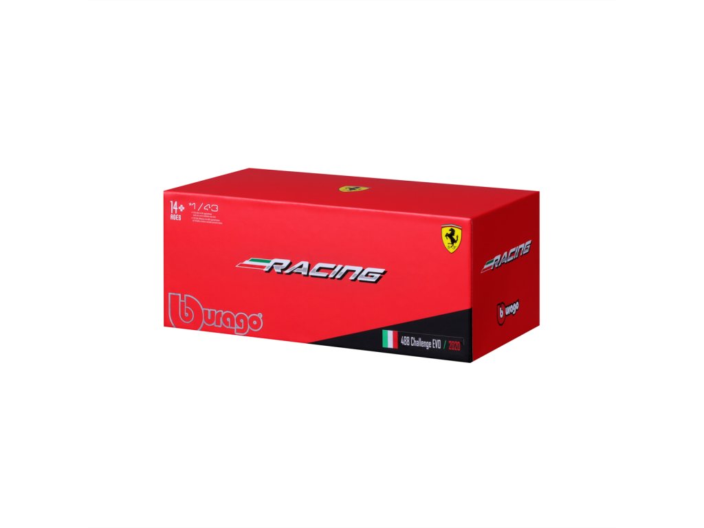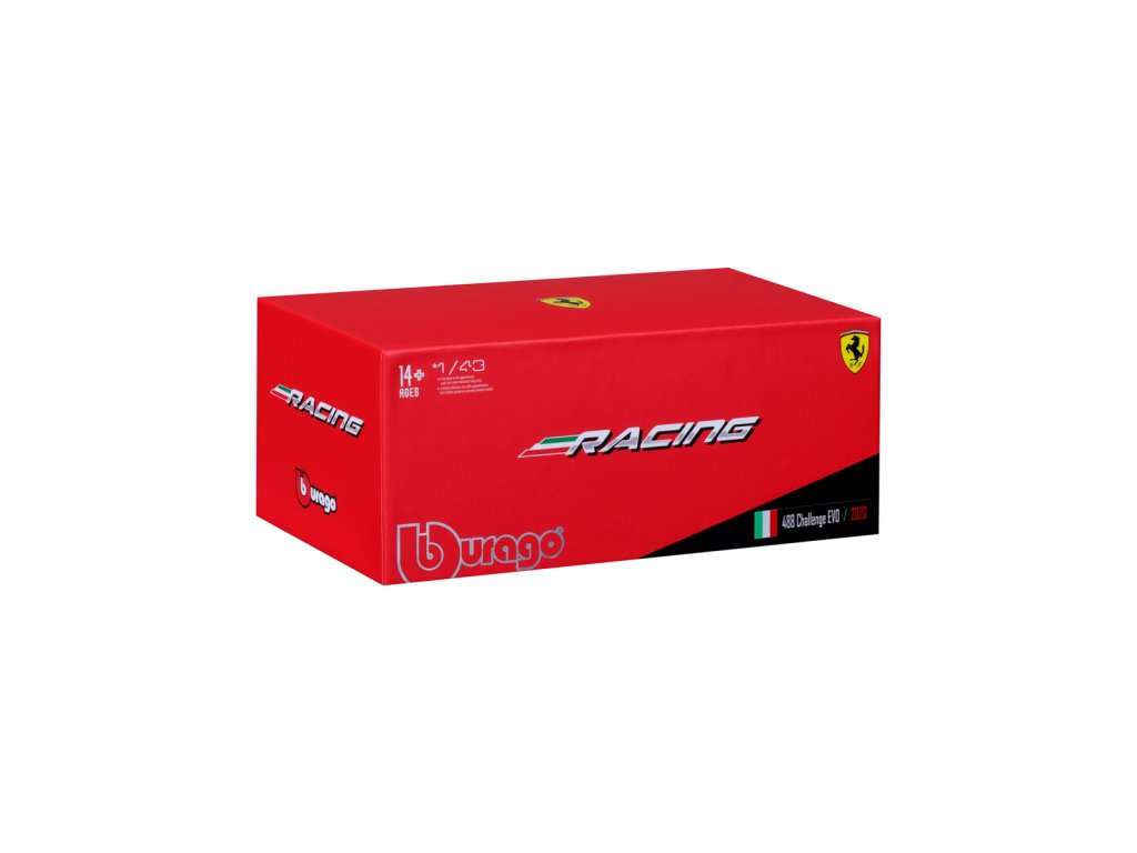 Bburago - RACING, Ferrari 488 CHALLENGE EVO 2020 v dekorativním boxu, 1:43