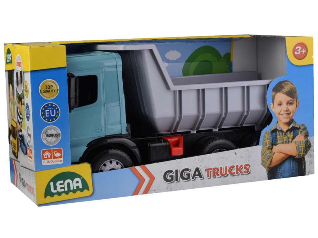 Plastové auto s rozšířenou korbou na vození velkého a těžkého nákladu. Korbu je možno zajistit pojistkou proti nežádoucímu vyklopení. Baleno v okrasném kartónu.