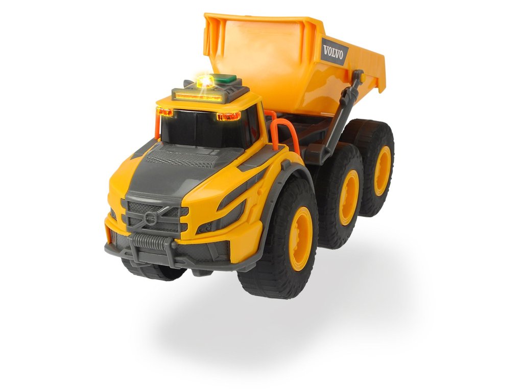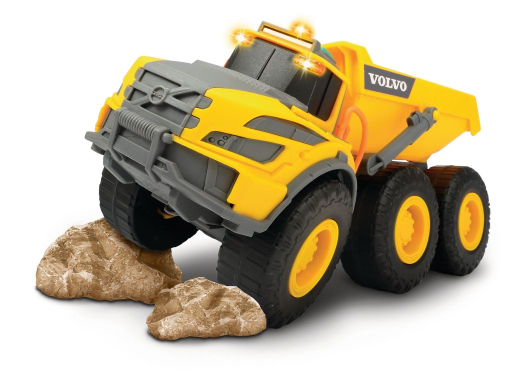 Kloubové nákladní auto v licenci Volvo na volnoběh, se světelnými a zvukovými efekty, manuálně pohyblivý nákladový prostor. Délka 23 cm.