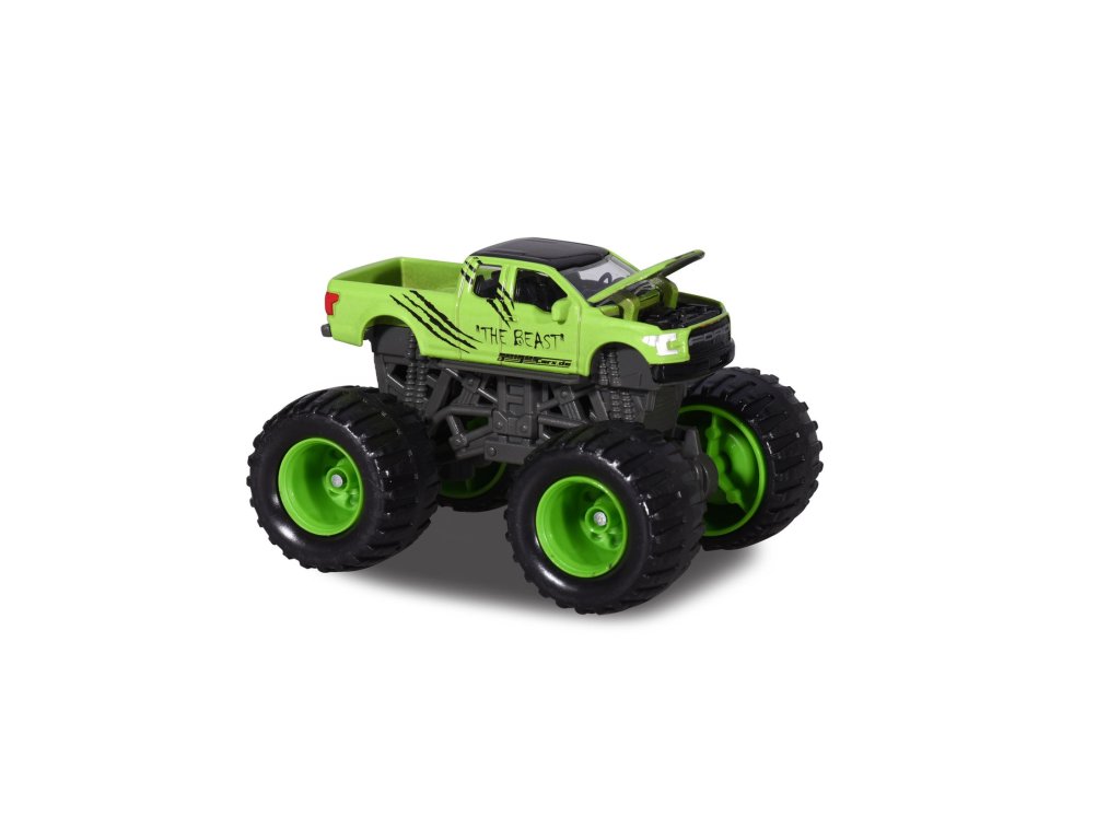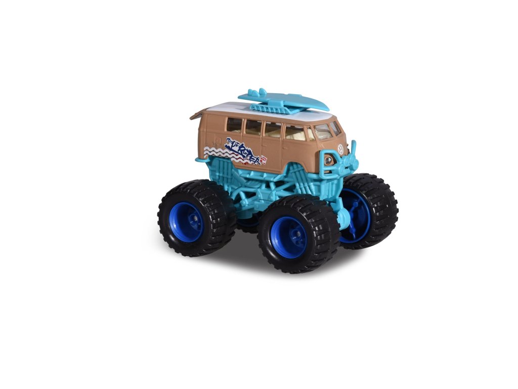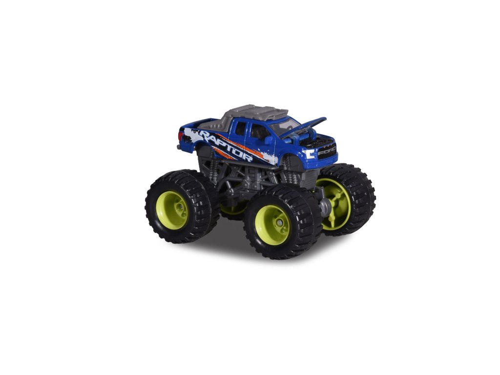 Kovové auto Monster Rockerz do terénu s velkými koly na volnoběh. 5 různých druhů. Délka 9 cm.