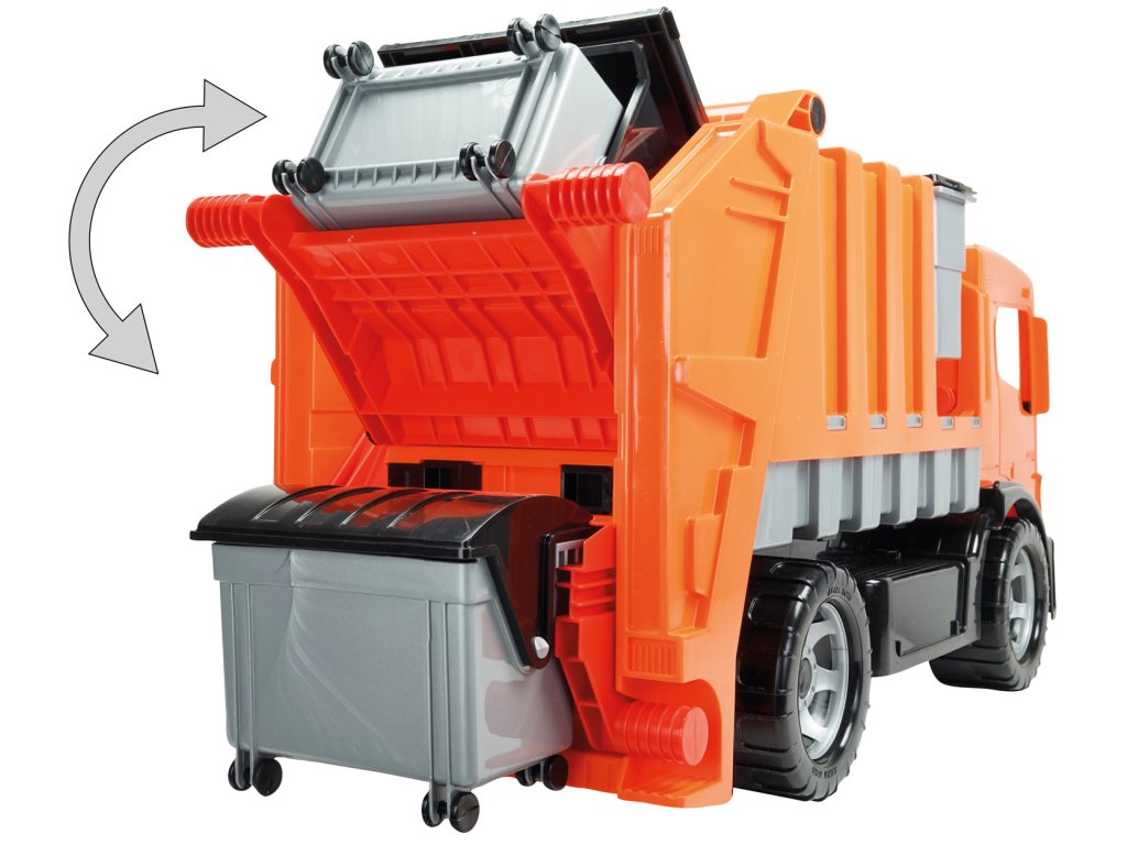 Plně multifunkční popelářské auto s odnímatelnou popelnicí a kontejnerem na kolečkách. Vyroben z kvalitního plastu. Lze použít jako odrážedlo o statické nosnosti 100kg.