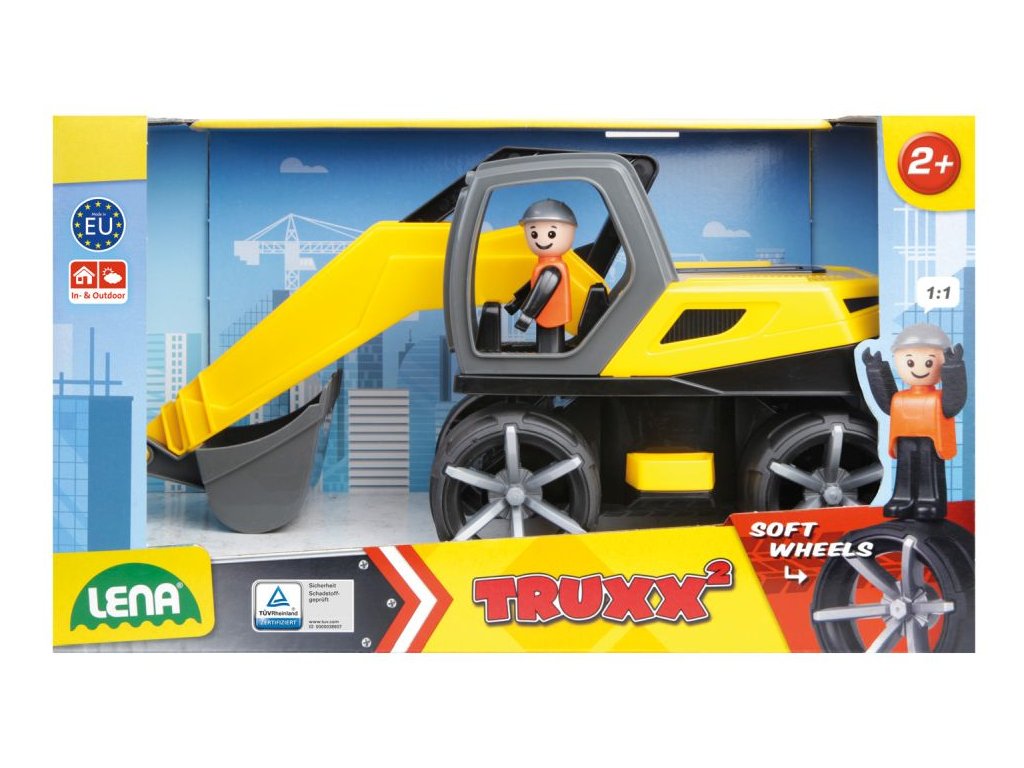 Truxx 2 bagr z kvalitního plastu a velmi pevnou stavbou. Plně mechanicky funkční. Obsahuje pojistku proti nežádoucímu otáčení spodní části, odklopitelnou kabinu s aktivním panáčkem. Baleno v okrasné krabici.