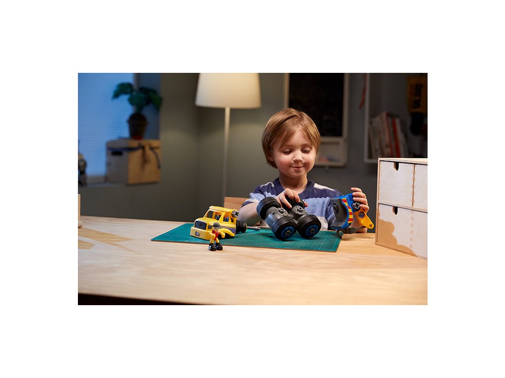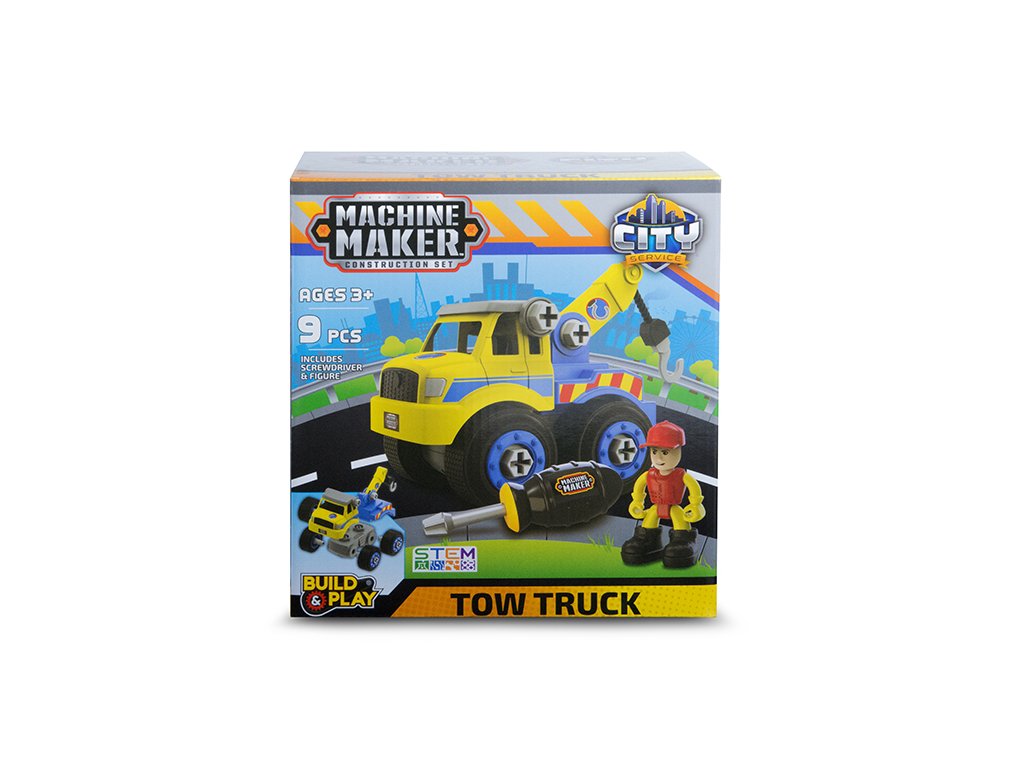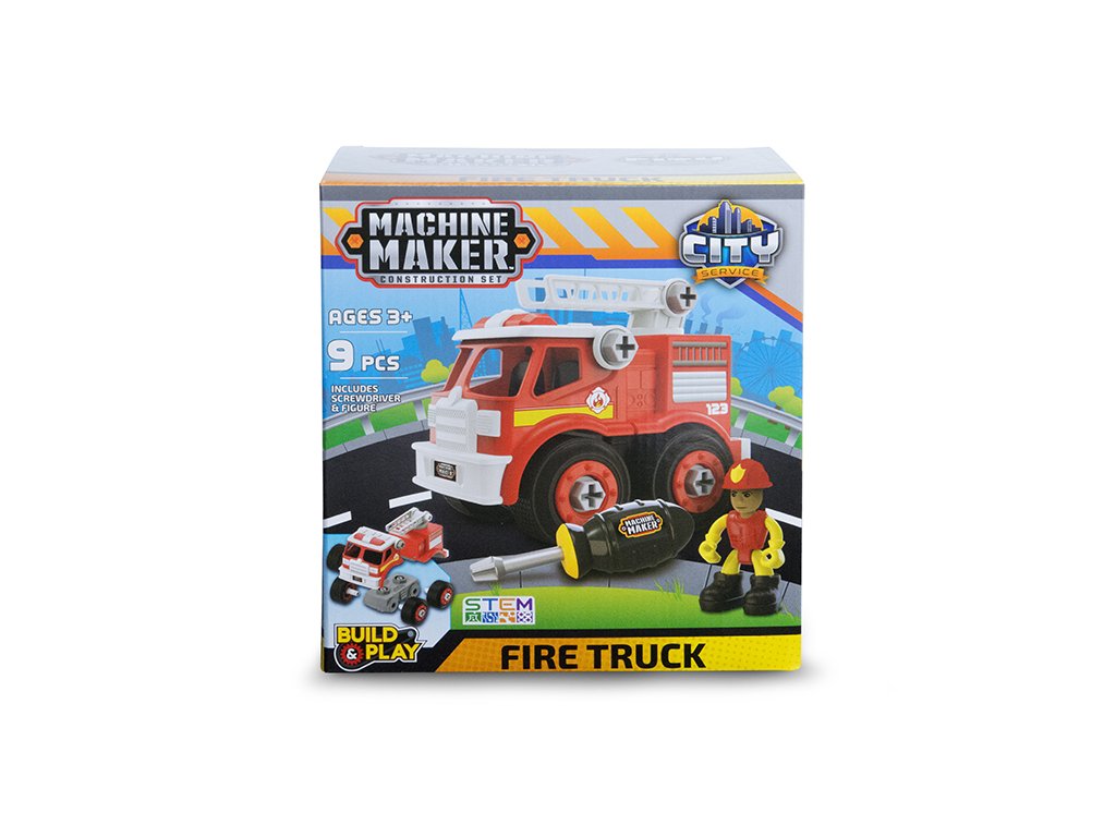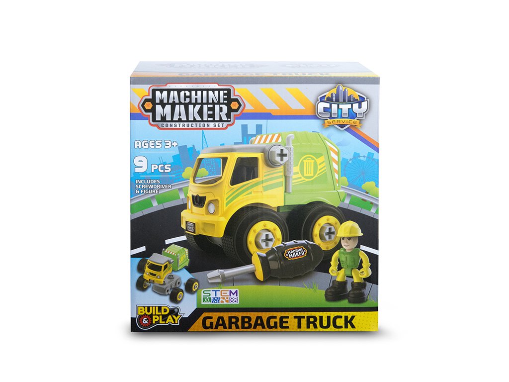 City Service přináší od značky Machine Maker všechny nové styly a motivy. Postavte hasičský vůz, popelářský vůz a odtahovku a poté jednotlivé díly kombinujte a vymýšlejte svůj vlastní bláznivý nový stroj. Každé vozidlo obsahuje šroubovák, figurku, samolepky a návod k použití.