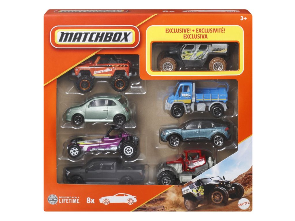 Prožijte realistická dobrodružství s balením 8 vozidel Matchbox™. Každé auto nebo truck v měřítku 1:64 má věrné detaily, které děti rozpoznají ze skutečného světa a které sběratelé milují. V každém balení je jedno jedinečné vozidlo. Každé balení se prodává samostatně dle aktuální nabídky.