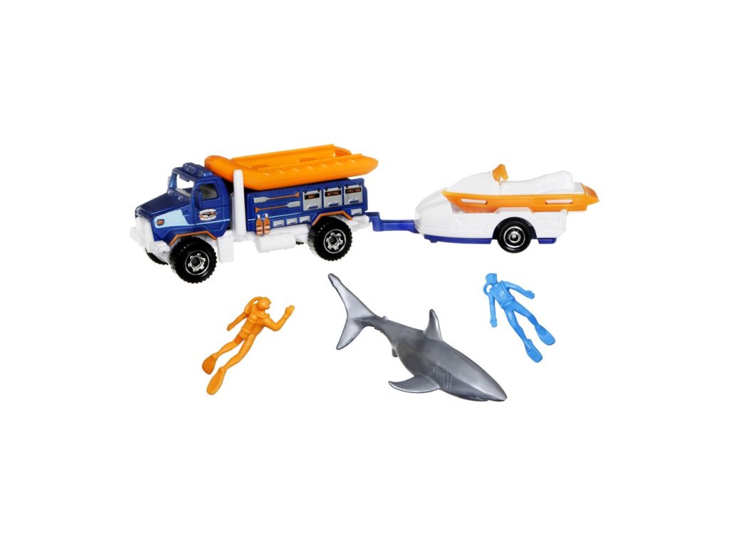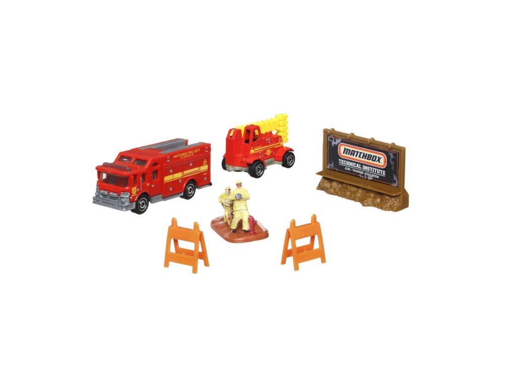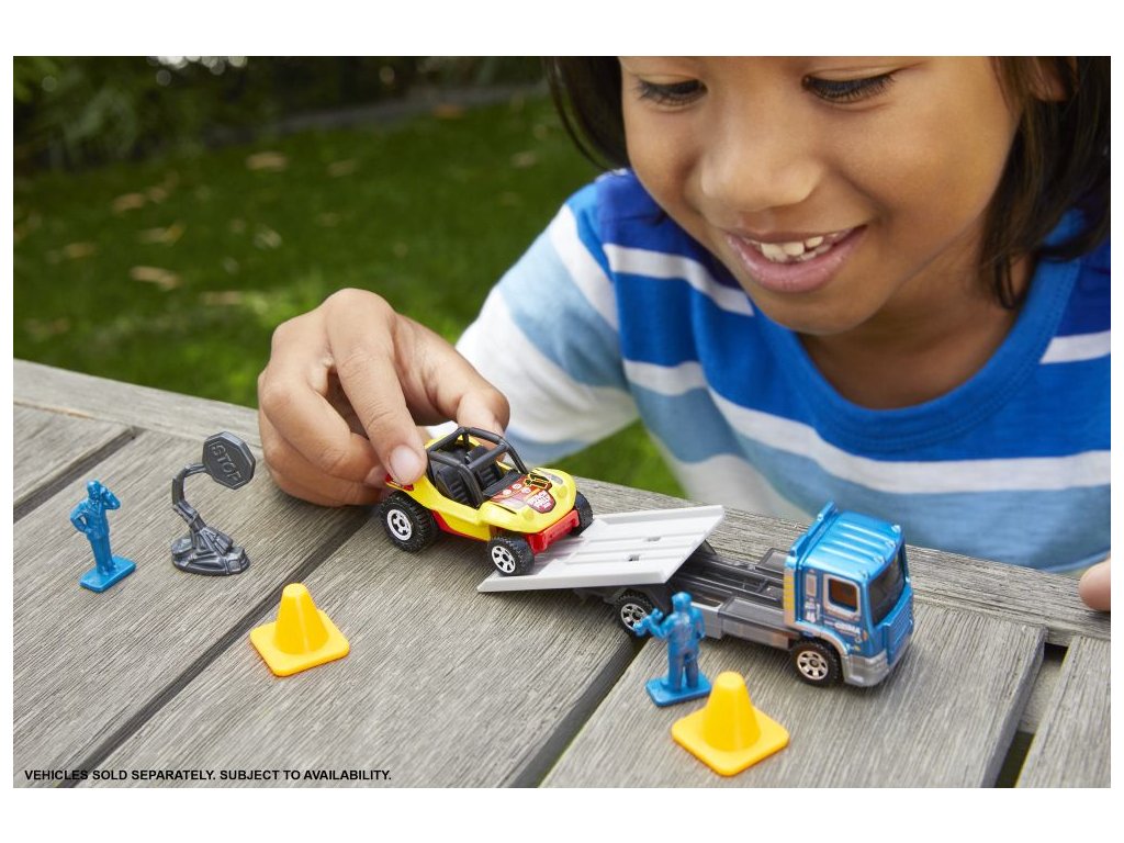 Matchbox™ Přepravní auto s doplňky obsahuje zajímavé motivy, s nimiž si děti mohou vytvářet a řídit svá vlastní dobrodružství. Každý set se skládá z vozidla hrdiny, tažného přívěsu a tematických doplňků, které v dětech oživí kreativitu a inspirují je k poznávání. Reálné motivy a realistické detaily navazují na tradici Matchbox™. Děti je mohou sesbírat všechny a zažít tak výjimečná dobrodružství! Každý se prodává samostatně v závislosti na dostupnosti. Nelze použít s některými sadami Matchbox™. Barva a provedení se mohou lišit.
