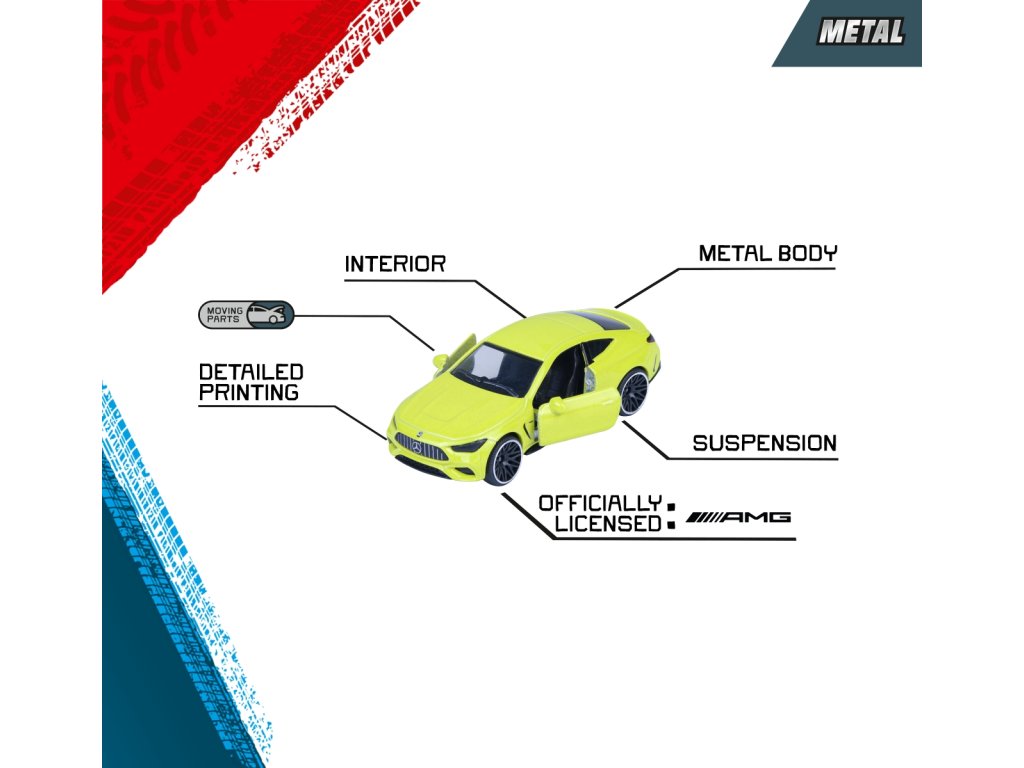 Dárková sada kovových autíček Mercedes-AMG na volnoběh. Balení obsahuje 5 ks autíček, z toho 2 exkluzivní modely, otevírací části. Délka autíčka 7,5 cm. V měřítku 1:64.