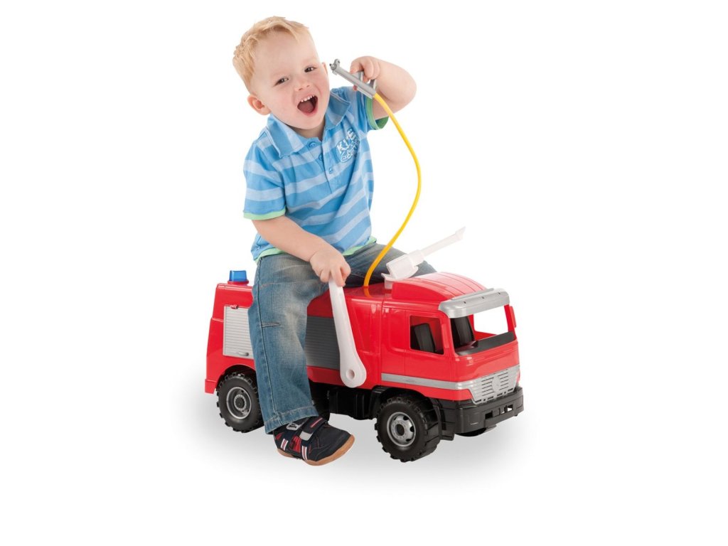 Mercedes požární auto s plně funkčním vodním dělem, velikost nádržky na vodu 1,6 litru, dostřik vody až 8metrů. Baleno v okrasném kartónu. Velikost 65x26x38cm. Vyrobeno v ČR.