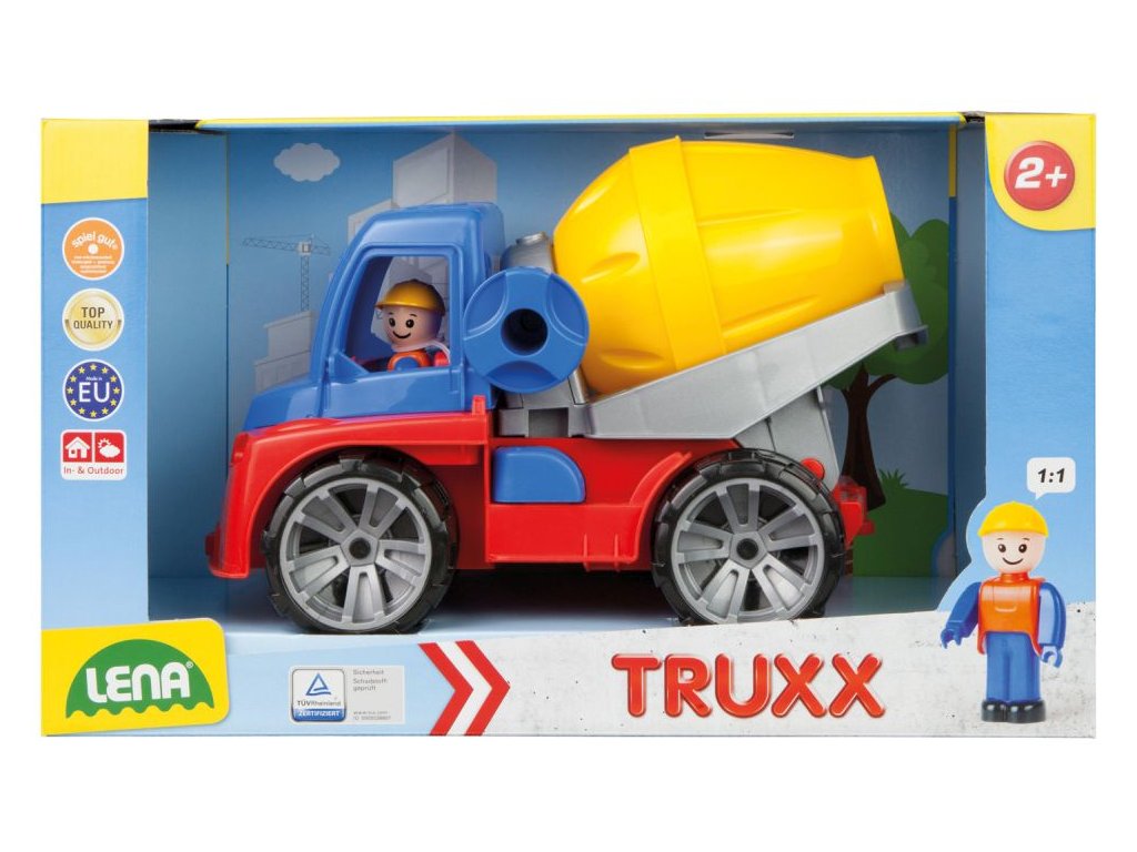 Truxx domíchávač z kvalitního plastu a velmi pevnou stavbou. Plně mechanicky funkční. Obsahuje pojistku proti nežádoucímu vyklopení, odklopitelnou kabinu s aktivním panáčkem. Vhodné pro kluky od 3 let.
