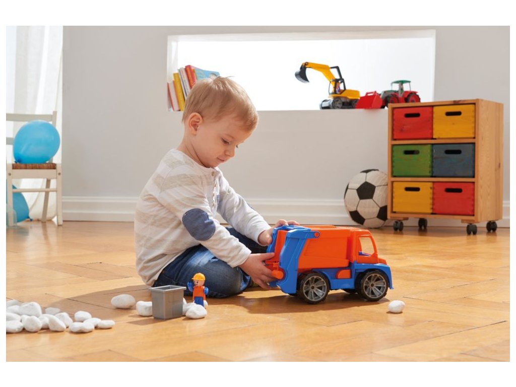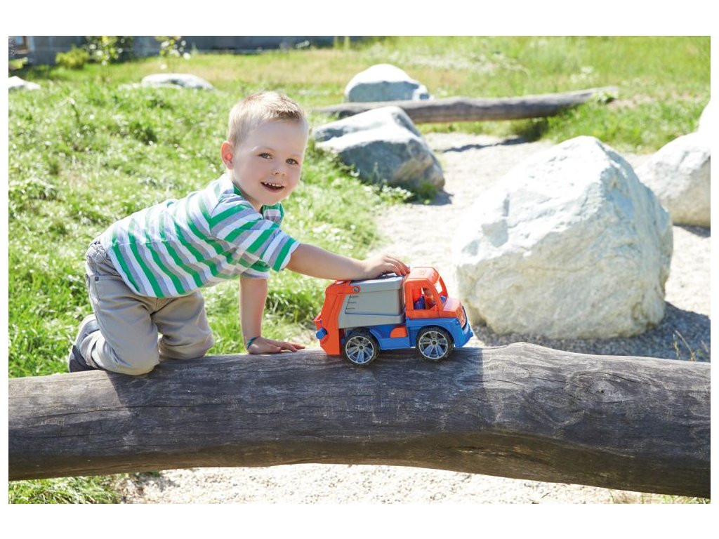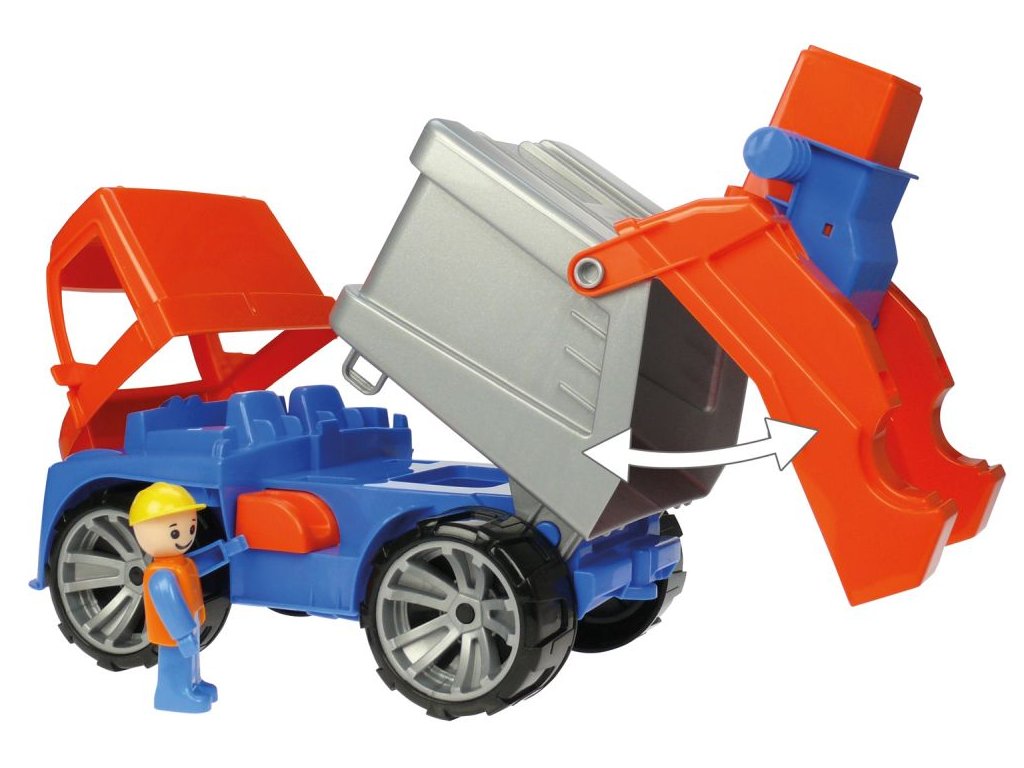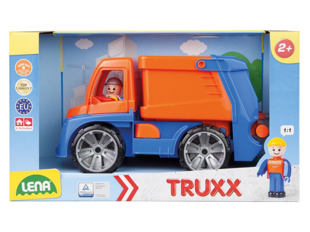 Truxx auto popelář z kvalitního plastu a velmi pevnou stavbou. Plně mechanicky funkční. Obsahuje pojistku proti nežádoucímu vyklopení, odklopitelnou kabinu s aktivním panáčkem. Baleno v okrasném kartónu. Vhodné pro kluky od 2 let.