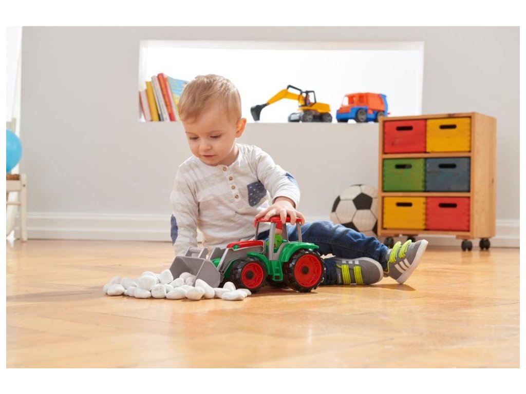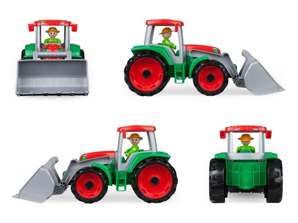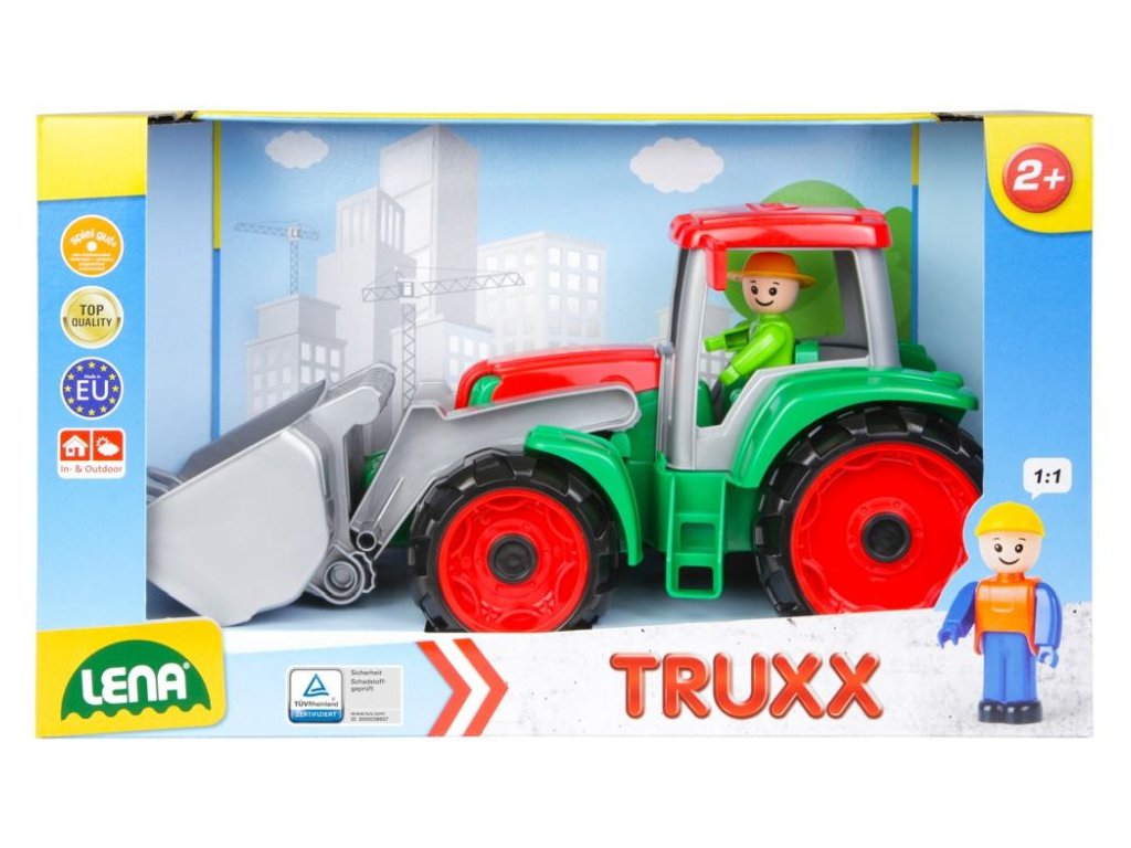 Truxx traktor se lžící z kvalitního plastu a velmi pevnou stavbou o velikosti 33 x 15 x 16 cm. Je plně mechanicky funkční. Obsahuje odklopitelnou kabinu s aktivním panáčkem. Vhodné pro kluky od 2 let.
