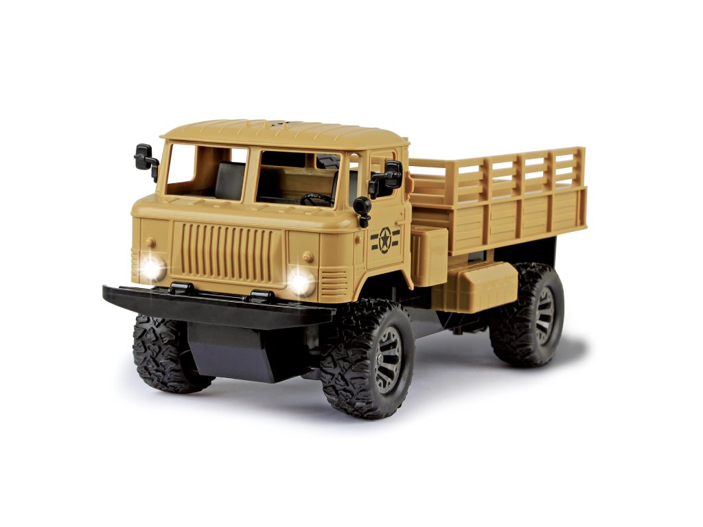 Auto vojenské RC na dálkové ovládání. Rozměry 25x12x13 cm. Frekvence 27 nebo 40MHz. Světelné efekty. 3.7V bateriový pack do auta součástí, 2xAA do ovladače nejsou součástí. USB kabel součástí. Přepínač ON/OFF na spodní straně auta.
