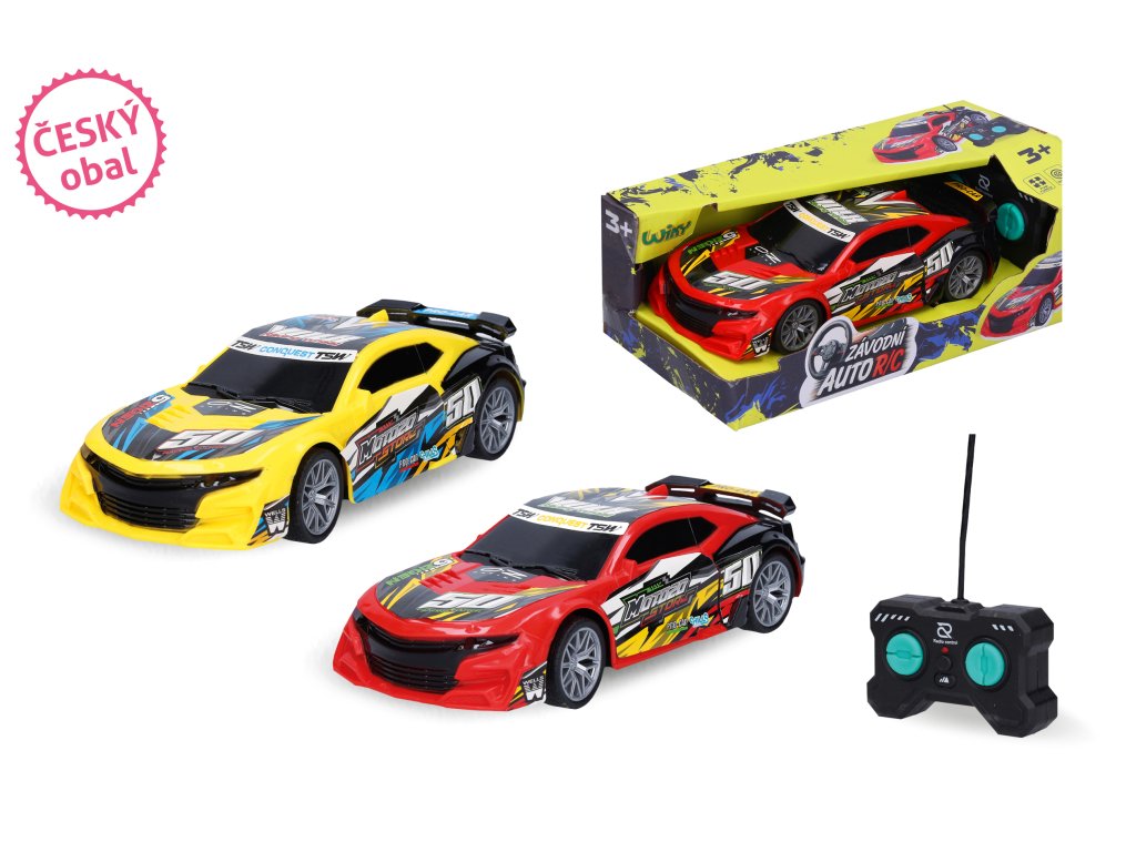 Auto Volk RC na dálkové ovládání. Rozměry 19x8x4,5 cm. Frekvence 27MHz a 80dbm. Světelné efekty. 3xAA baterie do auta, 2xAA do ovladače nejsou součástí. Přepínač ON/OFF na spodní straně obalu. 2 varianty - žlutá, červená.