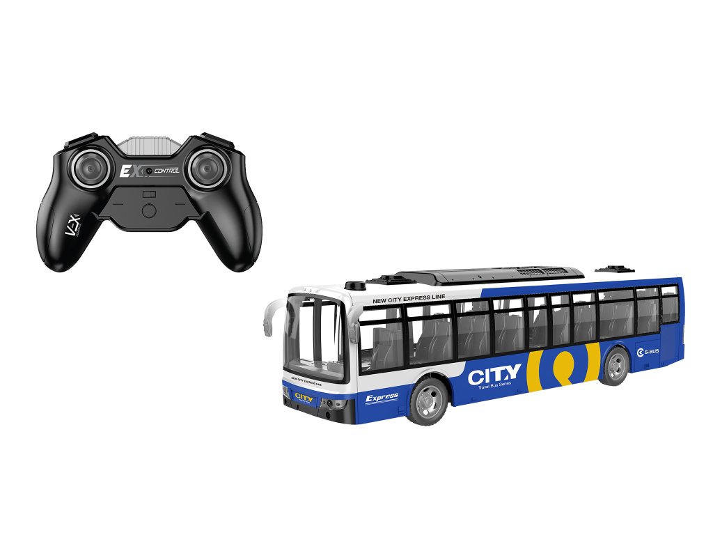 Autobus RC na dálkové ovládání. Rozměry 38x8x8 cm. Frekvence 2.4GHz. Světelné efekty. Bateriový pack 3.7V Li-ION 500mAh do autobusu součástí, 2xAA do ovladače nejsou součástí. USB kabel součástí. Přepínač ON/OFF na spodní straně autobusu a na ovladači.