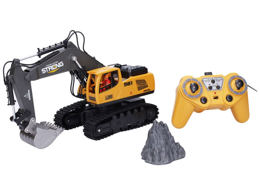 Bagr kouřící RC na dálkové ovládání. Rozměry 35x11,8x24 cm. Frekvence 2.4GHz. Světelné, zvukové a kouřové efekty. Ovladač - levá páčka - pohyb dopředu a dozadu, pravá páčka - otáčení základny doleva a doprava, levé velké tlačítko - zvedání nabíracího ramene, pravé velké tlačítko - pokládání nabíracího ramene, 3 malá tlačítka - klakson, demo režim, kouřové efekty. Nádržka na vodu v horní části bagru. Nádobka na vodu, šroubovák, náhradní kovová hydraulická ramena, hornina součástí. 3.7V bateriový pack do bagru součástí, 2xAA do ovladače nejsou součástí. USB kabel součástí. Přepínač ON/OFF na bagru a na ovladači.