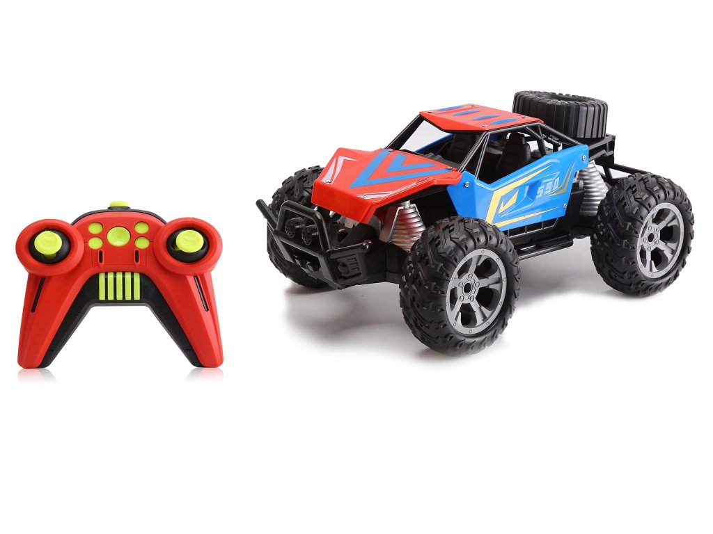Bugina 590 RC na dálkové ovládání. Rozměry 33x22x14,5 cm. Frekvence 2.4GHz. Bateriový pack 3.7V 800mAh do auta součástí, 2xAA do ovladače nejsou součástí. USB kabel součástí. Přepínač ON/OFF na spodní straně auta.