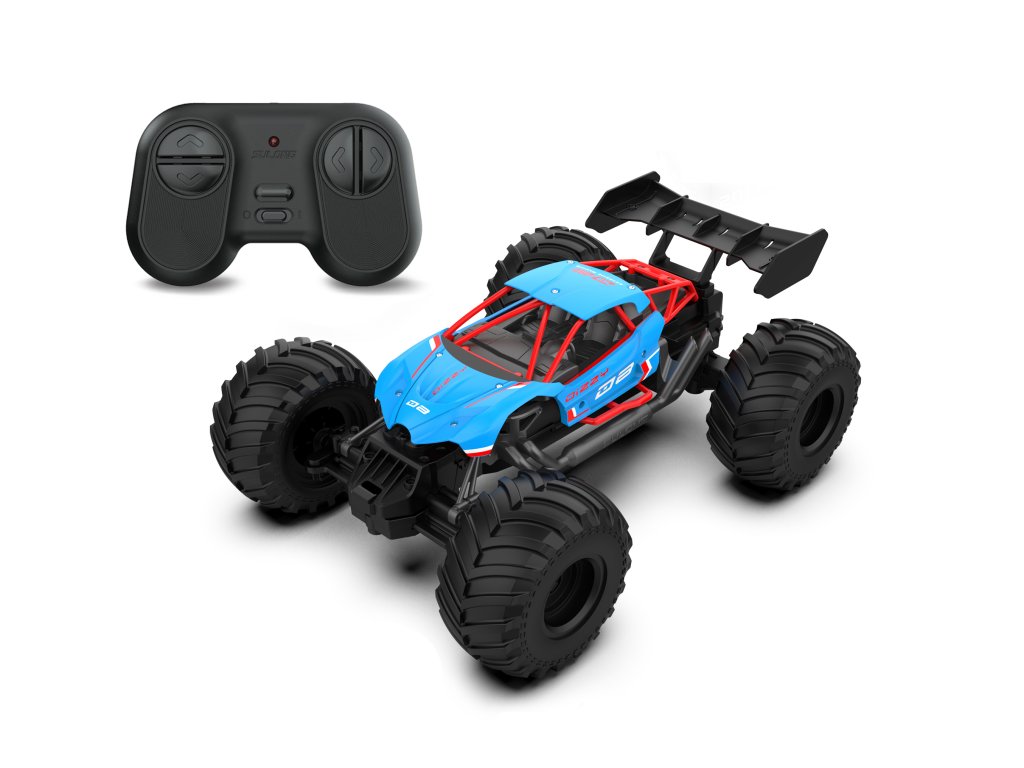 Bugina Dizzy RC na dálkové ovládání. Rozměry 33x24x13 cm. Frekvence 2.4GHz. 4xAA baterie do buginy, 2xAA do ovladače nejsou součástí. Přepínač ON/OFF na spodní straně buginy a na ovladači.