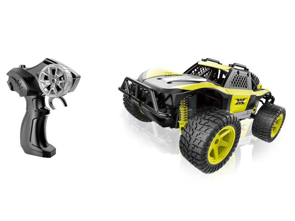 Bugina Pioneer RC na dálkové ovládání. Rozměry 24x16x11 cm. Frekvence 2.4GHz. Pistolový ovladač. Rychlost 20 km/h. Bateriový pack 3.7V Li-ion 500mAh do buginy součástí, 2xAA do ovladače nejsou součástí. Přepínač ON/OFF na spodní straně buginy a na ovladači.