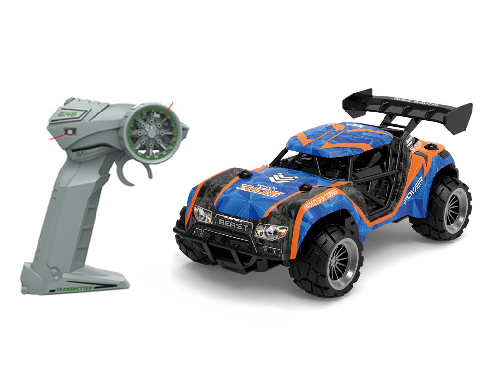 Bugina Power Racing RC na dálkové ovládání. Velikost 22 cm. Frekvence 2.4GHz. Pistolový ovladač. Bateriový pack 3.7V 500mAh Li-ion do buginy součástí, 2xAA do ovladače nejsou součástí. USB kabel součástí. Přepínač ON/OFF na spodní straně buginy a na ovladači.