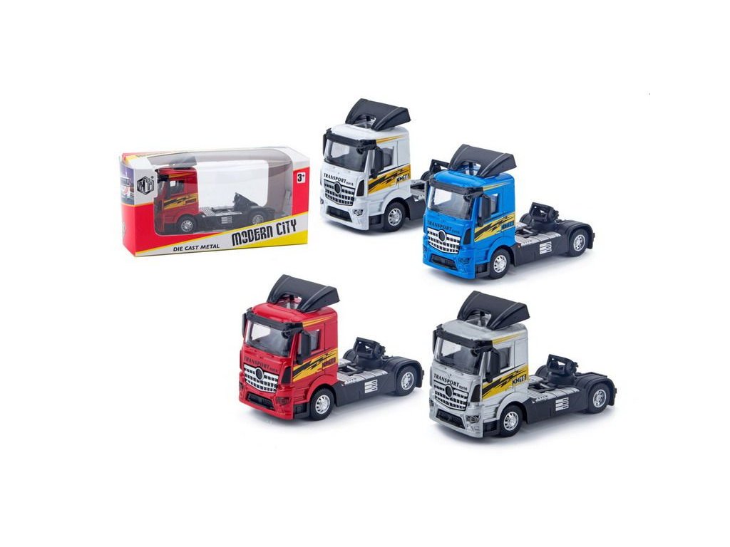 Auto kovové nákladní. Rozměry auta 10x3,8x6 cm. Volná kola. 4 varianty - červená, modrá, bílá, šedá.