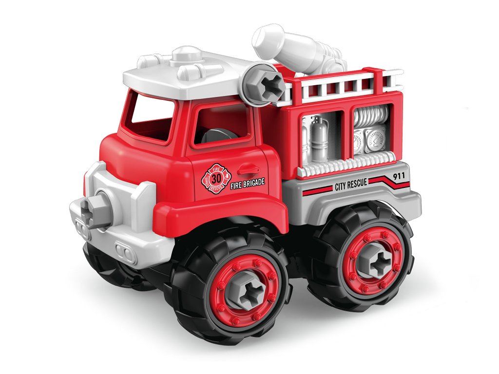 Auto šroubovací hasiči. Rozměry 12,7x16x16 cm. Volná kola. Obsah balení - auto, šroubovák.