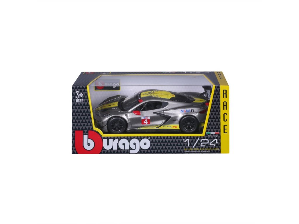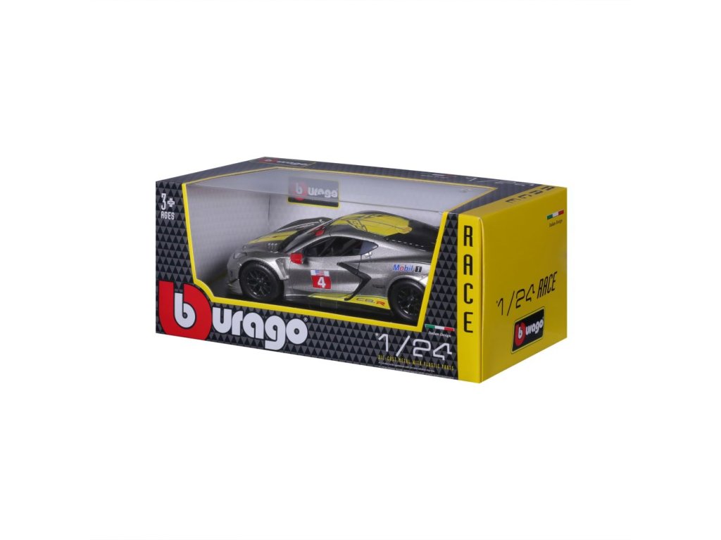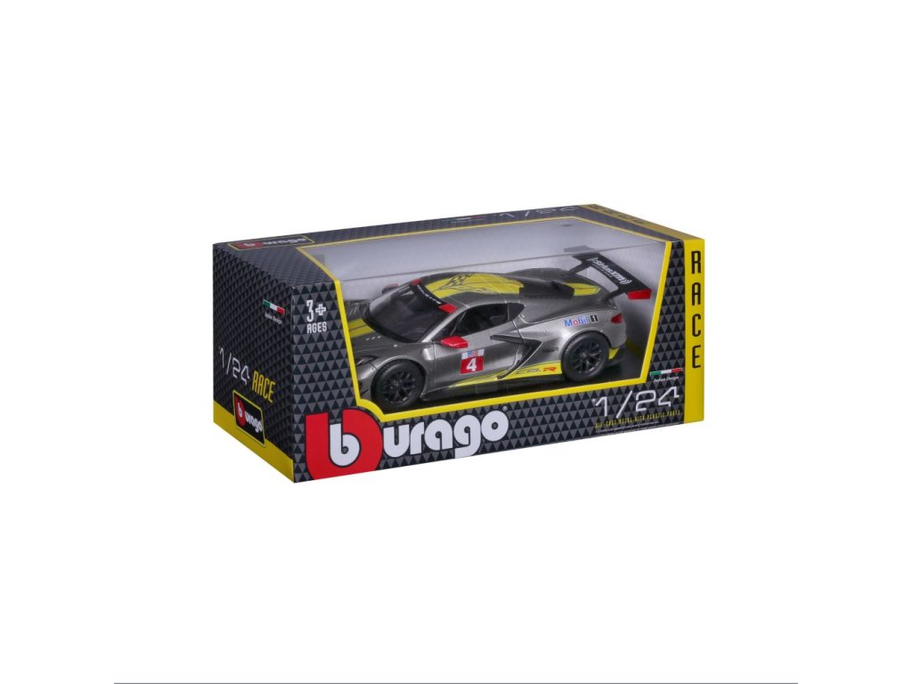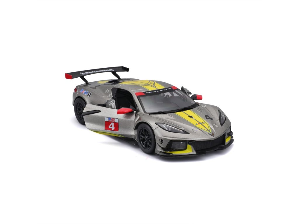 Kovové autíčko Bburago 1:24 Racing - 2020 Chevrolet Corvette - C8R #4 Yellow