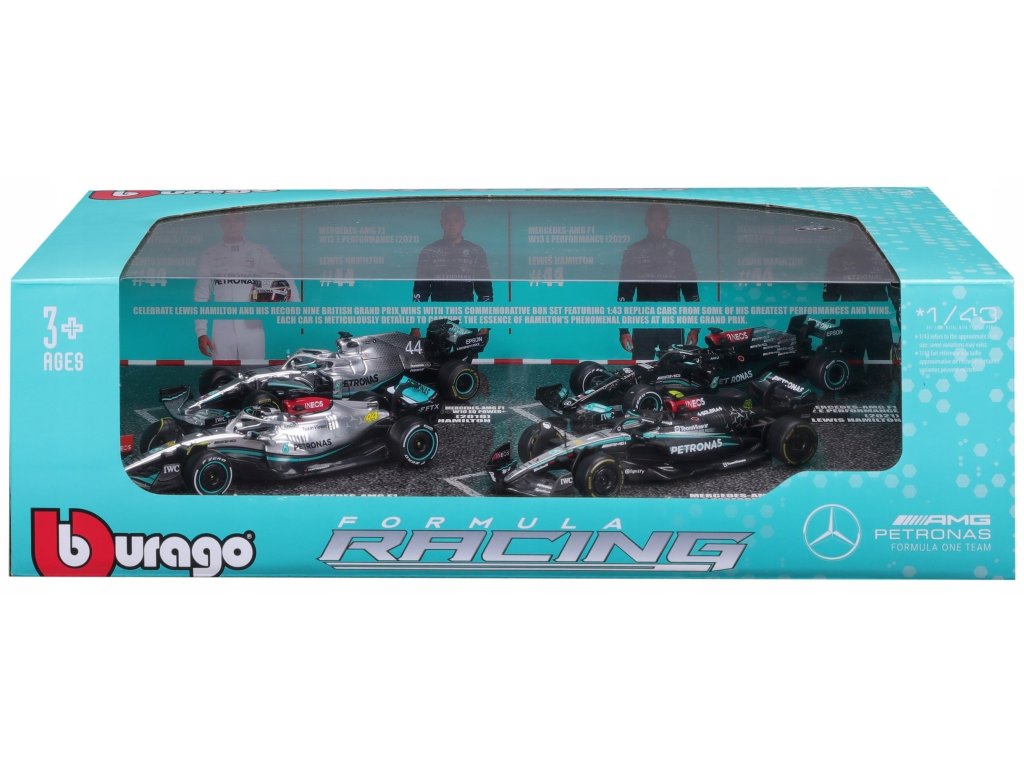 Bburago 1:43 RACE Formula F1 4PAC Mercedes-AMG F1 W15 (2024) #44 L.Hamil ton #63 G.Russel