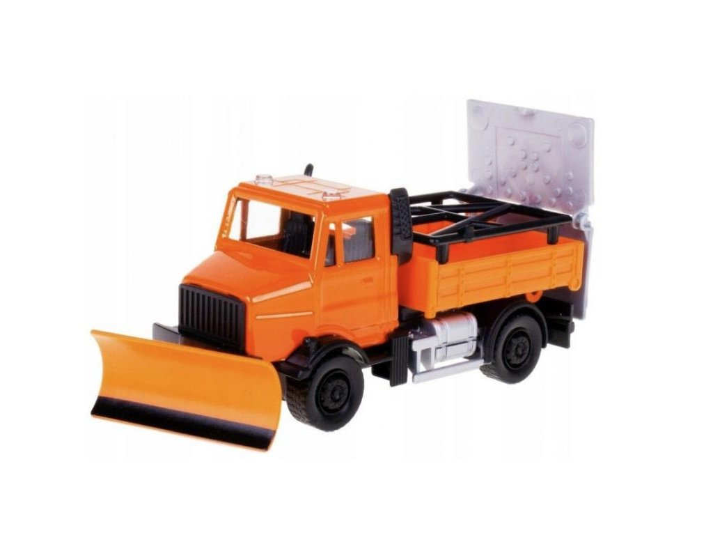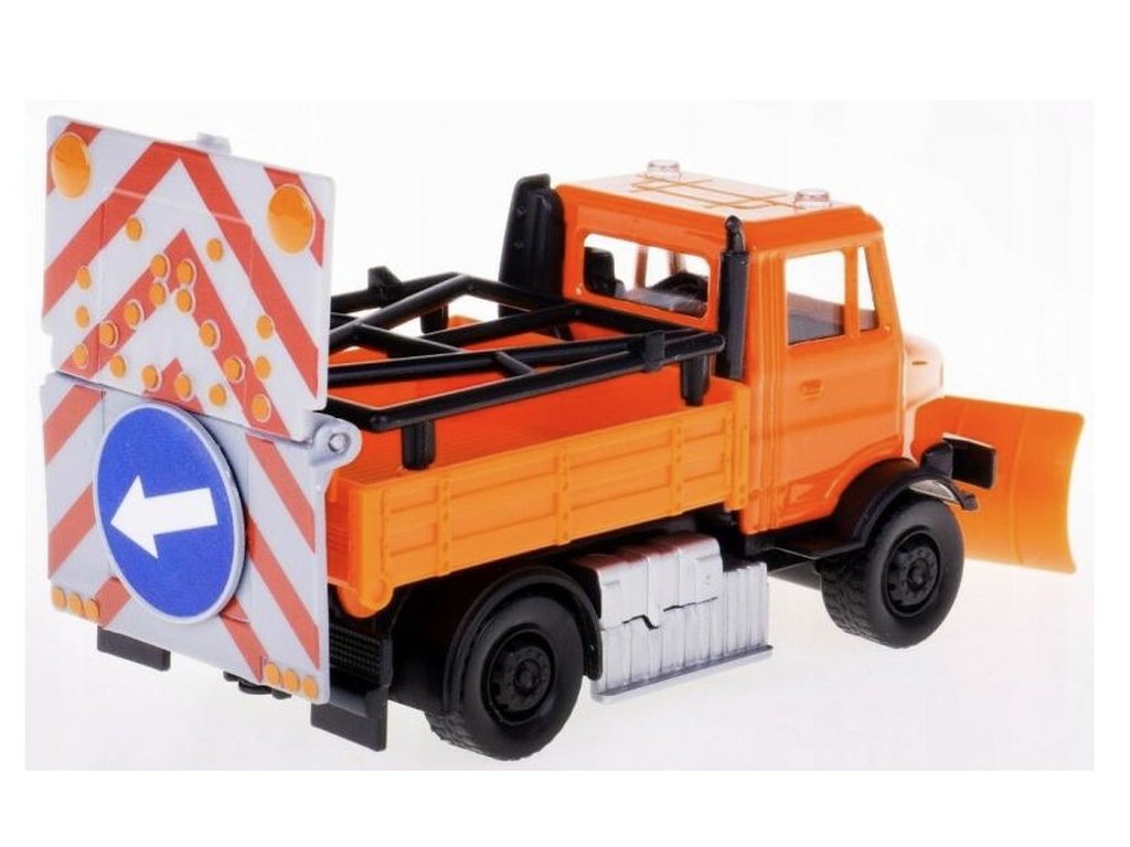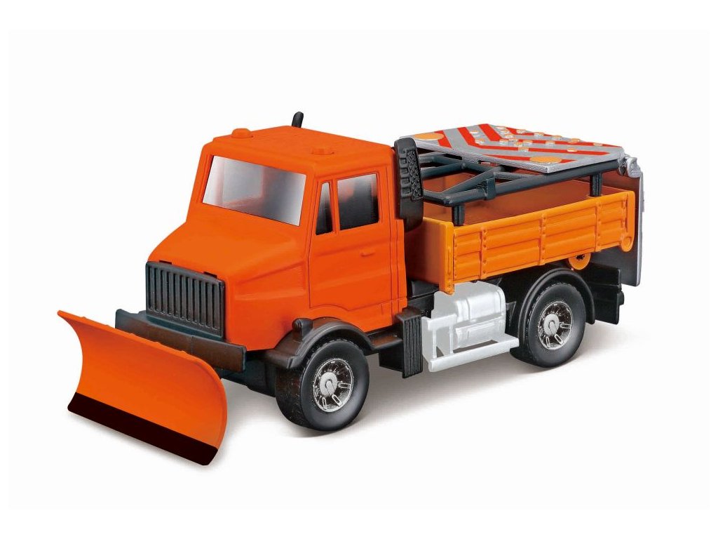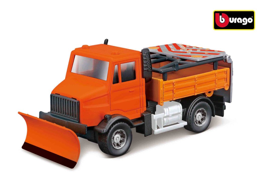 Bburago 1:43 servisní vozidlo Silniční zabezpečení se sněžným pluhem a signalizační deskou