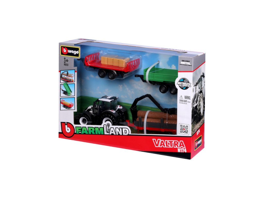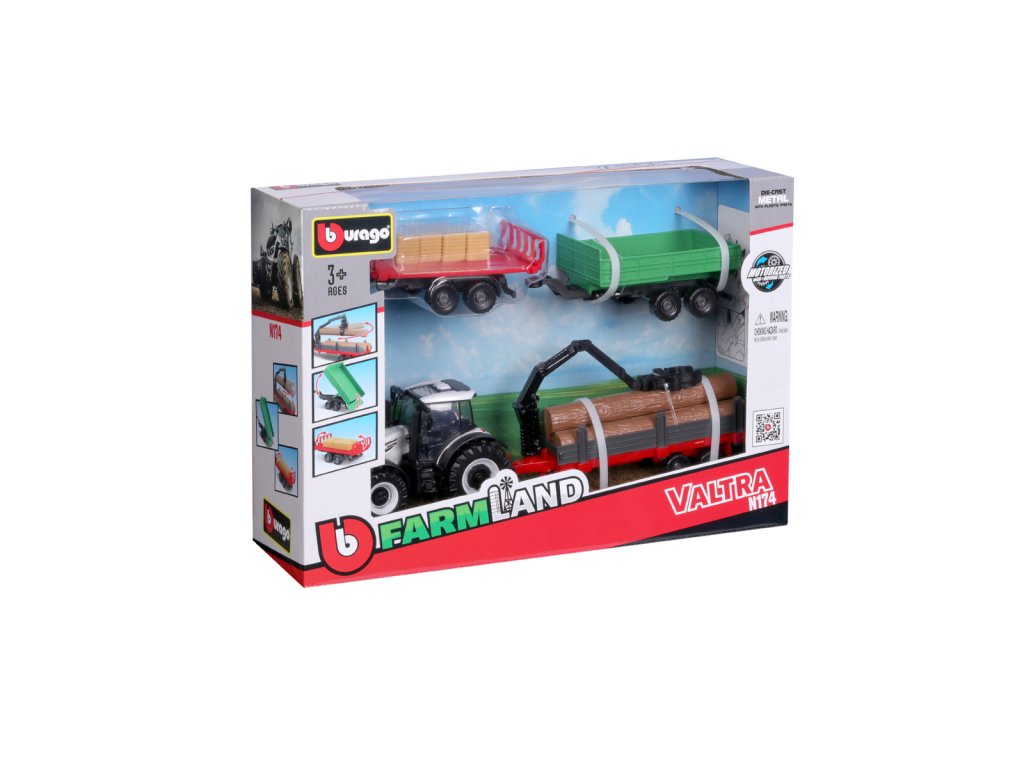Bburago 10cm Farm tractor Gift Set - Valtra N174 with 3 trailers