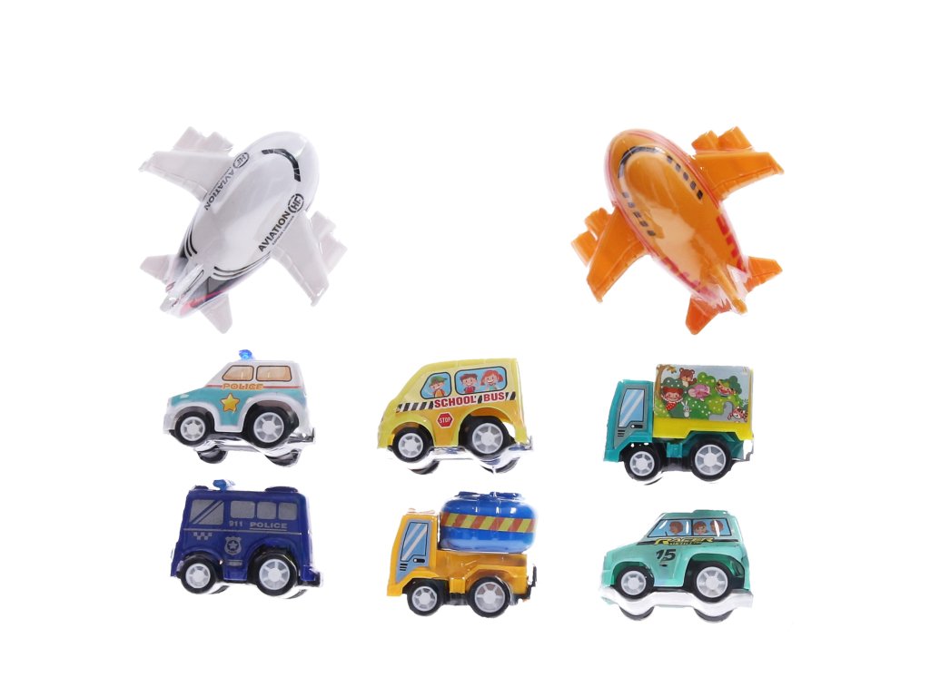 Dopravní prostředky 8 ks. Velikost 7 cm. Na zpětné natažení.