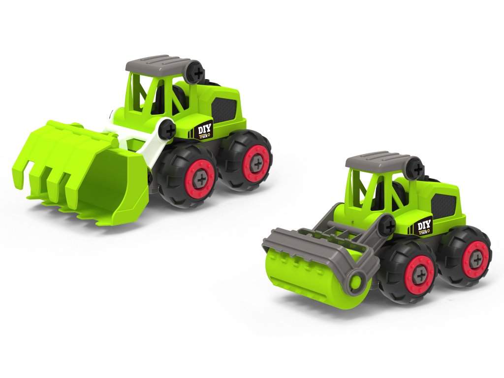 Zemědělský stroj šroubovací. Rozměry 15,5x9x10 cm. Volná kola. Obsahuje zemědělský stroj, šroubovák. 2 varianty - válec, nakladač.
