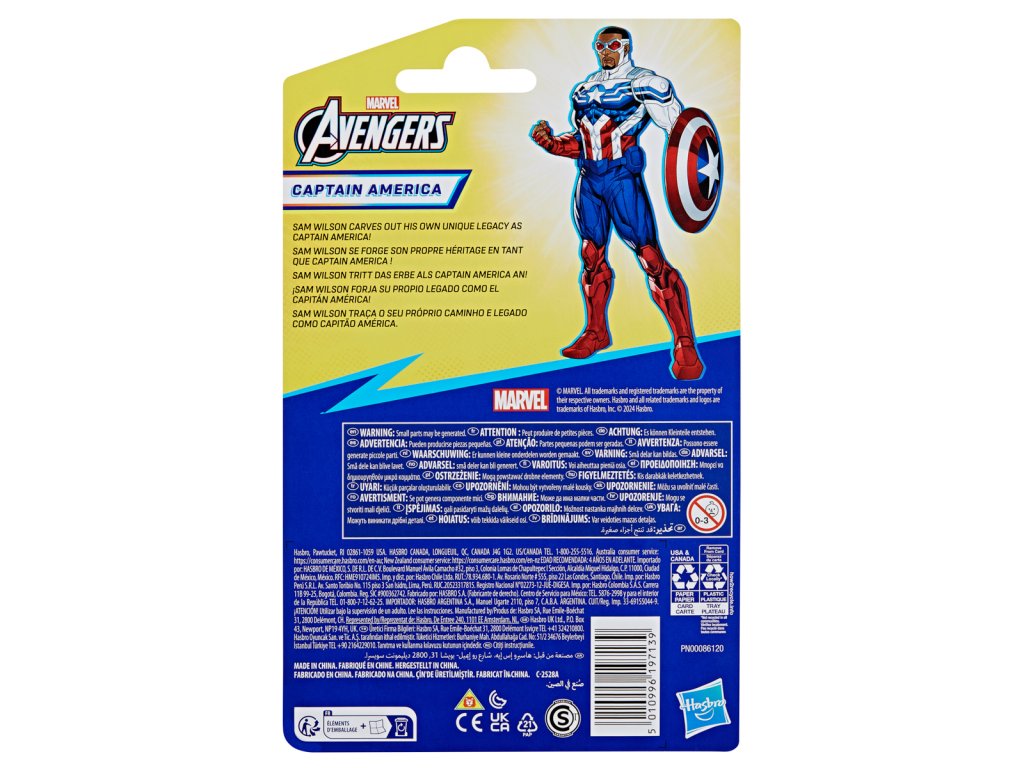 Fanoušci světa Marvel, tuto skvělou 10 cm vysokou figurku Avengers Captain America si zamilujete. Sam Wilson získává své vlastní jedinečné dědictví jako Captain America, člen skupiny Nejmocnějších hrdinů Země, The Avengers. Díky pečlivým detailům je figurka z kolekce Epic Hero Series také skvělým sběratelským kouskem. Skvělý tip na dárek pro fanoušky všech věkových kategorií. Figurka má několik pohyblivých bodů v kolenou, loktech, ramenou, pasu a hlavě pro akční pózování. Figurka také obsahuje odnímatelný ikonický štít. Vyrobeno z kvalitního plastu. Baleno v blistru. Rozměry balení: 20,32 x 12,7 x 3,17 cm. Věk: 4+