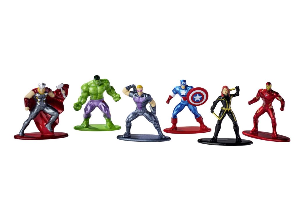 Sada 6 kovových sběratelských figurek Avengers - Thor, Iron man, Hulk, Hawkeye, Black Widow, Captain America . Výška 4 cm.