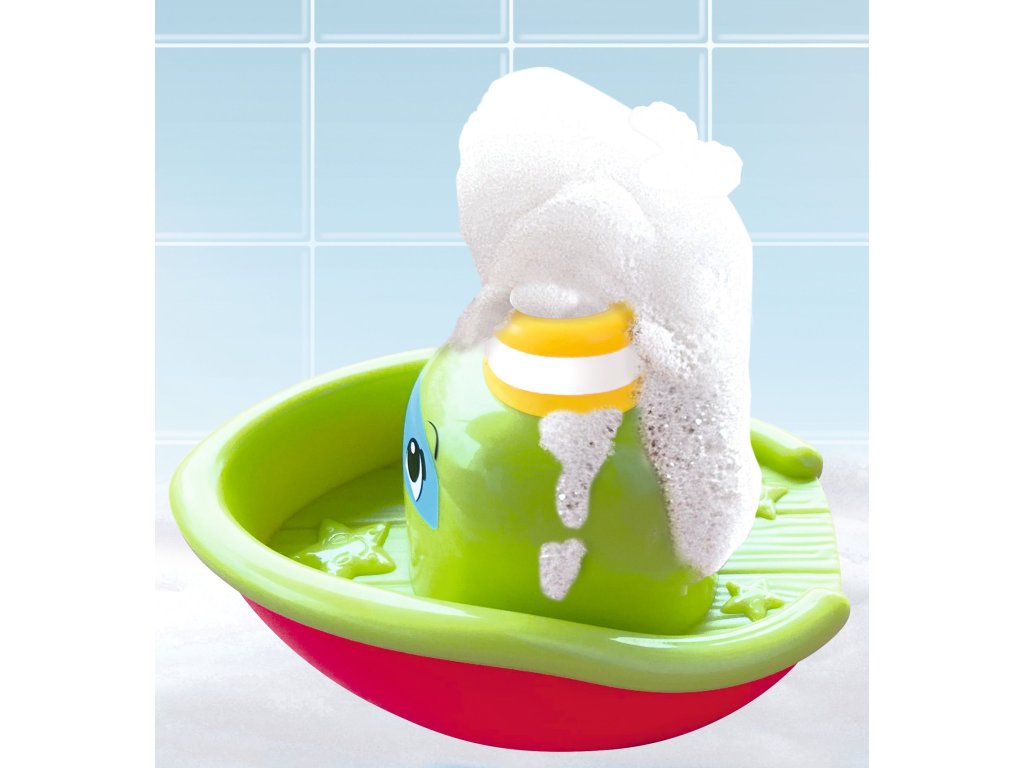 Po stlačení lodičky pod vodu, vycházejí z komína pěnové bubliny. Délka 11 cm.