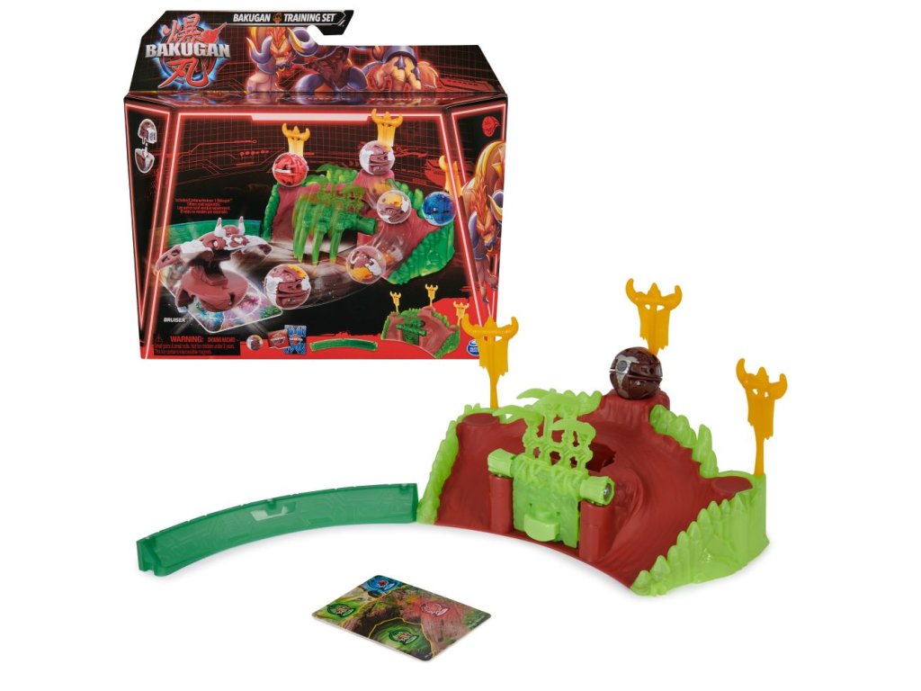 Přizpůsobte si a vylepšete každou bitvu Bakuganů pomocí Bakugan tréninková sada. Každá hrací sada a Bakugan jsou tematicky zaměřené na různé klany ze seriálu. Přehrávejte si vlastní zápasy a překážky pomocí pružinového systému, 3 totemů a kousku stěny a pokaždé si zahrajte jedinečnou hru. Pusťte, převalte a udržte Bakugana na této hrací soupravě a zachyťte akci pomocí kousku stěny. Převalte svého Bakugana na kartu brány a sledujte jeho proměnu pomocí ikonických otevíracích transformací. Vstupte do bitvy s přiloženými klanovými vlajkami, které představují vašeho Bakugana. Použijte kartu postavy pro získání nových statistik a zvyšte si tak úroveň hry. Každá akční figurka Bakugan obsahuje speciální kód pro použití v online hře Roblox pro nové možnosti hraní a interakce. Zkombinujte více tréninkových sad nebo bitevní arénu a vytvářejte větší bitvy pro více akce. Zařaďte všechny nové populární hračky Bakugan mezi své oblíbené sběratelské předměty, včetně Bakugan Speciální útok a Bakugan balení Speciální útok (každý prodáván zvlášť). Použijte plechový box Baku-Tin (prodává se samostatně) nebo bakuganský kufřík ideální pro uložení všech bojových postav a karet při další bitvě Bakugan. Trénujte a staňte se vítězem s Bakugan tréninkovými sadami.