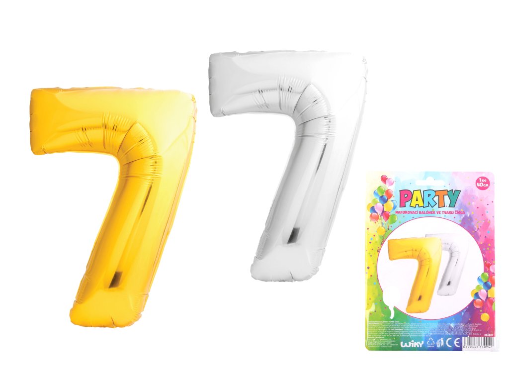 Balónek číslo 7 - 40 cm. Barevné varianty - zlatá, stříbrná. Materiál - nylon.