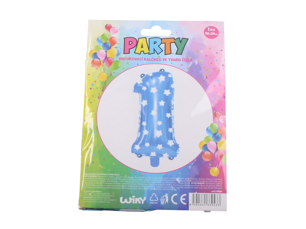 Modrý nafukovací balónek s hvězdičkami ve tvaru čísla je vhodný jako doplněk na narozeninovou párty!