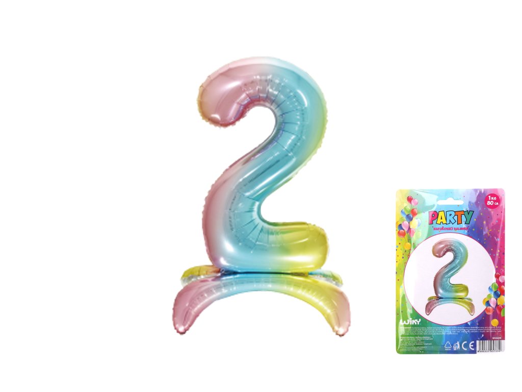 Balónek nafukovací ve tvaru čísla 2 Duha. Velikost balónku v nenafouklém tvaru 80 cm.