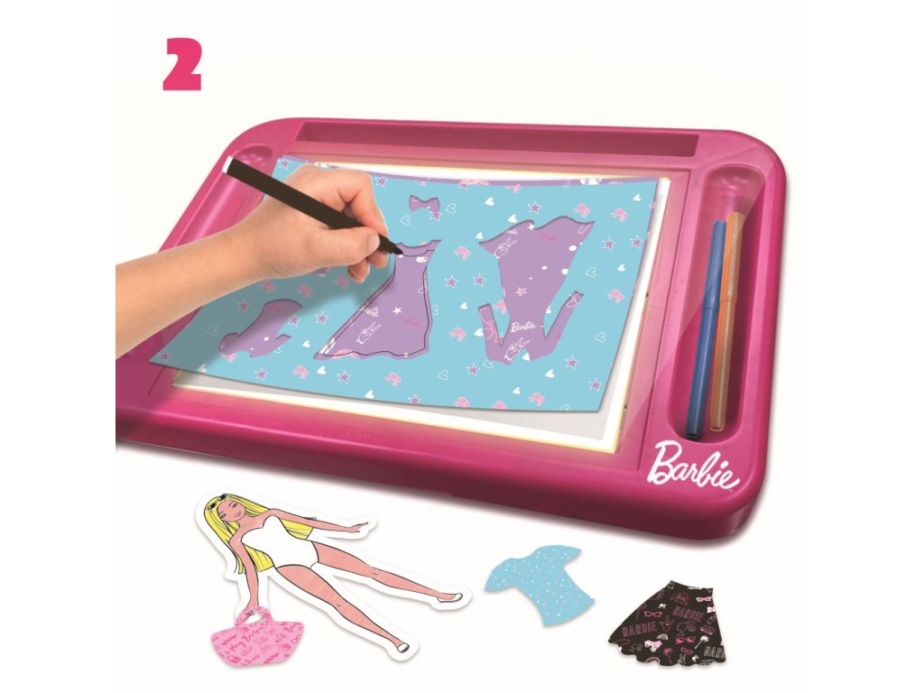 S Barbie's Fashion Atelier se můžete stát skutečnými módními návrháři. Díky světelnému stolku si můžete vytvořit vlastní modely a pomocí kamínků, stuh a barevných vzorů oživíte své kolekce. Bavte se také vytvářením oblečení pro vaši Barbie, které je součástí balení. Vhodné pro děti od 4 let.