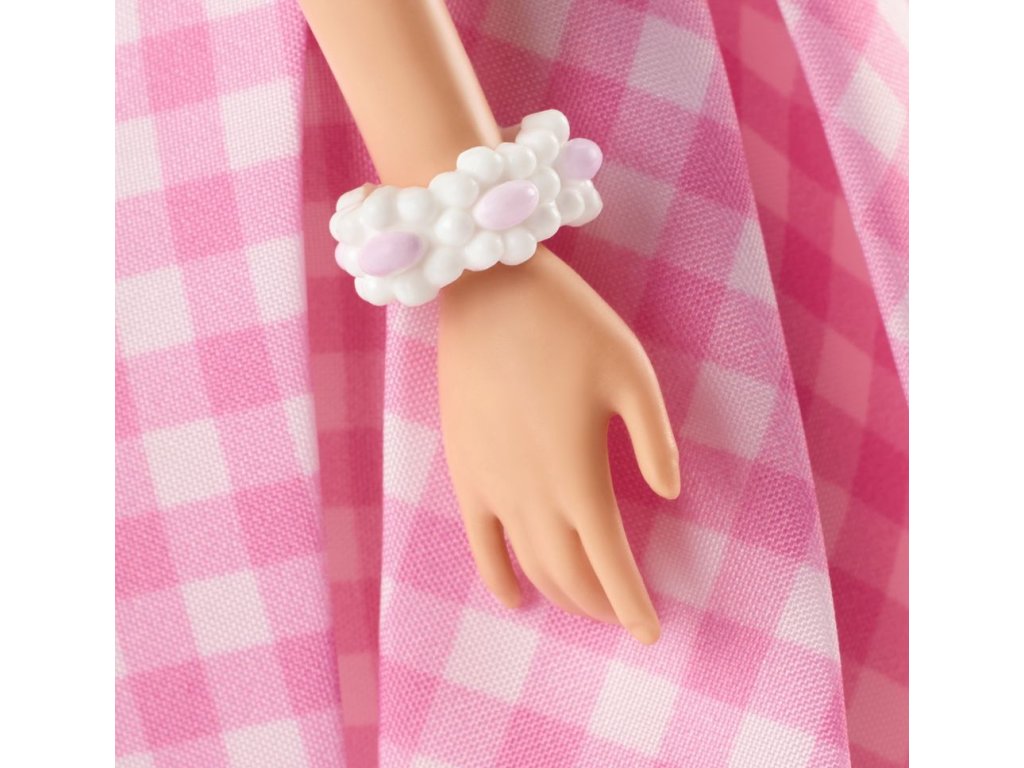 Tato sběratelská panenka Barbie® v ikonickém filmovém outfitu se pyšní úžasnými módními kreacemi, které potěší všechny fanoušky. Panenka má nadčasovou siluetu a vzhled jako její postava v celovečerním filmu Barbie™. Se svými růžovými ginghamovými šaty, dlouhými blond vlasy svázanými stuhou, sedmikráskovým náhrdelníkem a růžovými lodičkami zdobenými srdcem je připravena prožít ten nejlepší den! Panenka má kloubové tělo a v podobě Margot Robbie jako Barbie je skvělým dárkem pro fanoušky i sběratele.