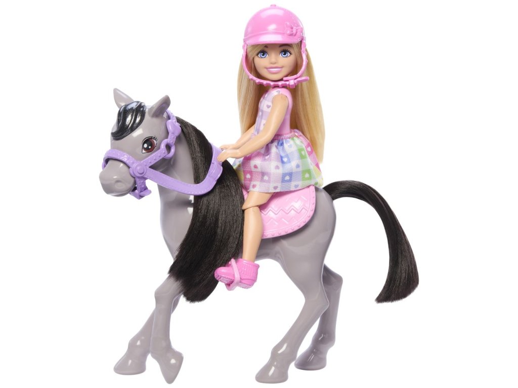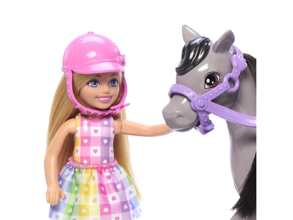 Sada panenky Chelsea™ s poníkem umožňuje dětem vyprávět nejrůznější příběhy o přátelství a dobrodružství. Panenka Chelsea™ má na sobě roztomilý obleček s helmou a rozkošný poník má sedlo a otěže. Panenka neumí samostatně stát. Barvy a vzhled výrobku se mohou lišit.
