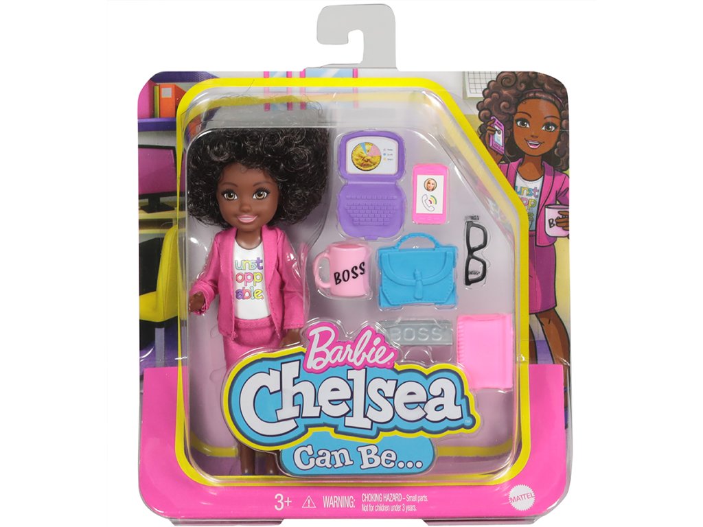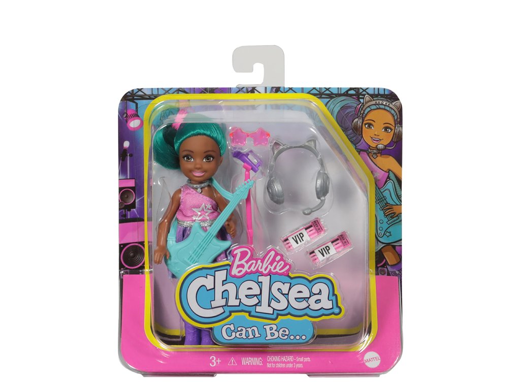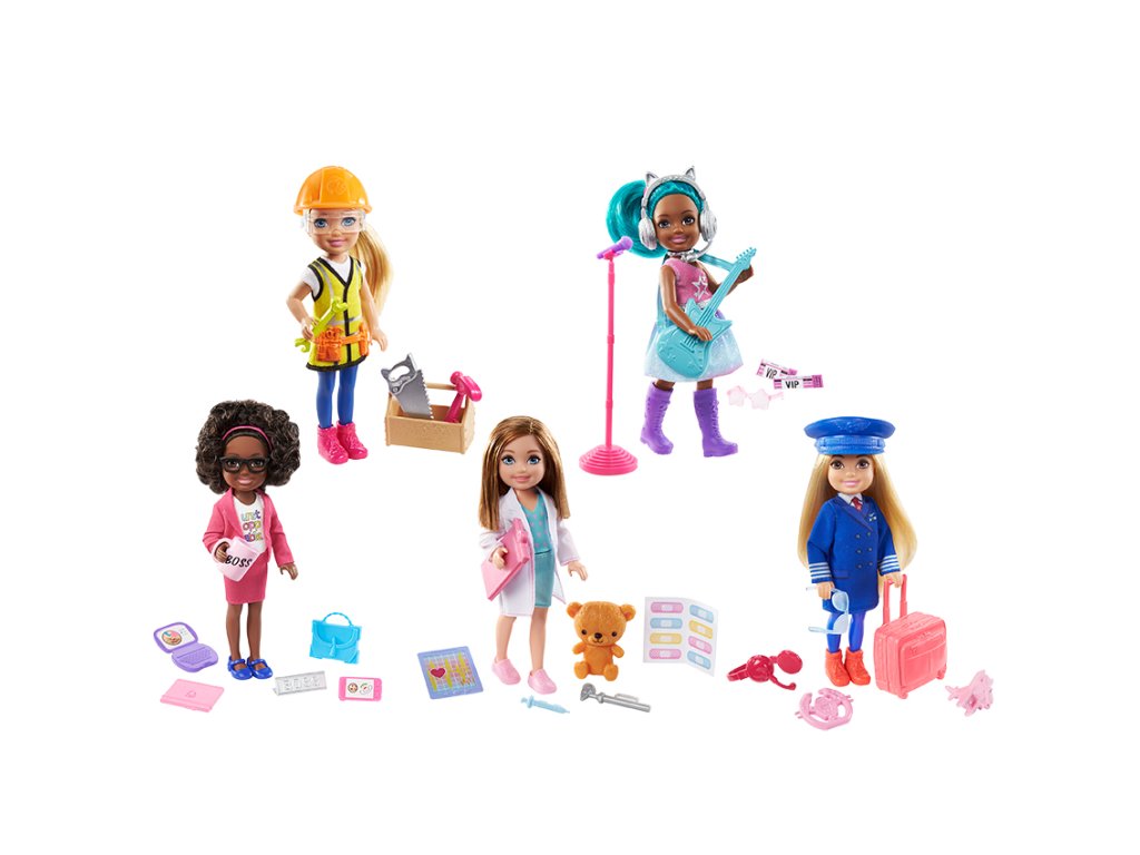 Stejně jako její starší sestra Barbie® si i panenka Chelsea® ráda zkouší různá povolání! Děti mohou s Chelsea® v povolání objevovat svět zábavy a vymýšlet tolik nových příběhů. Tato řada obsahuje různé panenky Chelsea® (15,24 cm) v různých profesních rolích. Vyberte si z panenky pilotky, lékařky, podnikatelky/šéfky, rockové hvězdy nebo stavitelky. Každá panenka Chelsea® v povolání má rozkošné oblečení s profesní tématikou a s doplňky souvisejícími s touto profesí. Prodávají se samostatně dle aktuální nabídky. Panenky neumí samostatně stát. Barvy a vzhled výrobku se mohou lišit. Pro děti od 3 let.