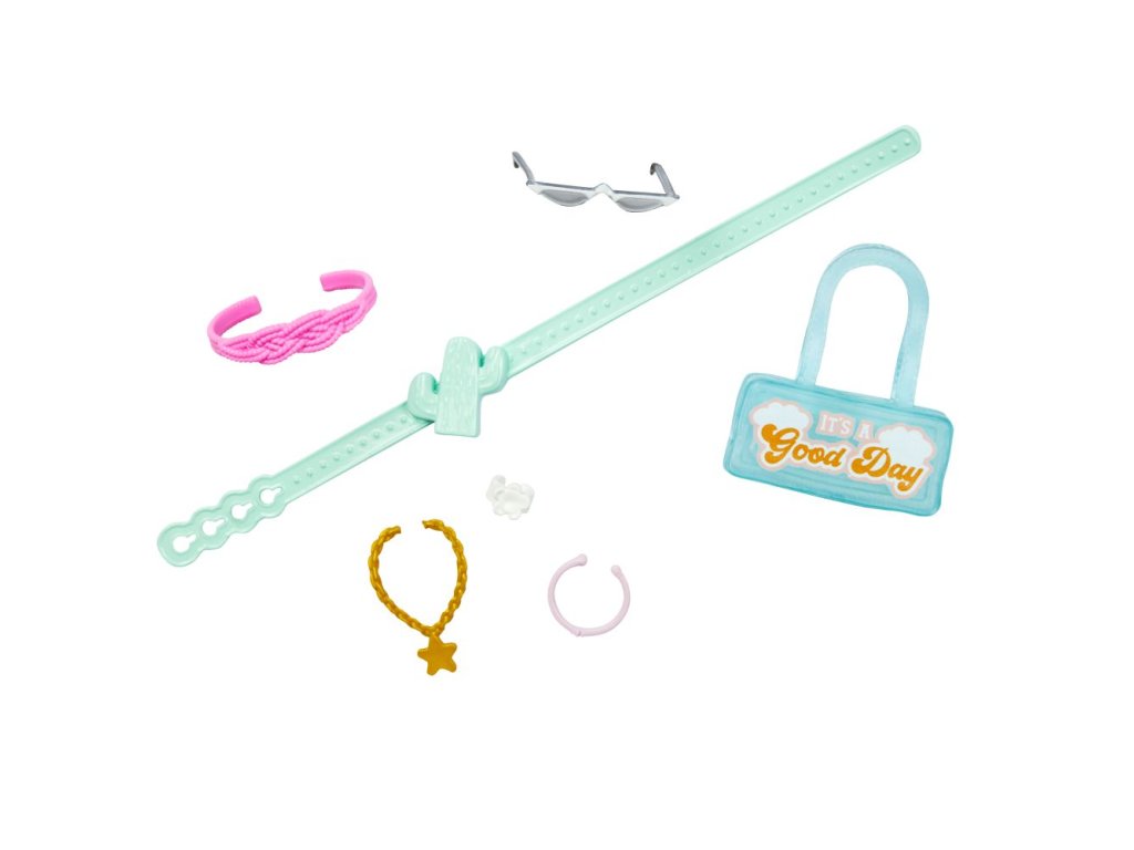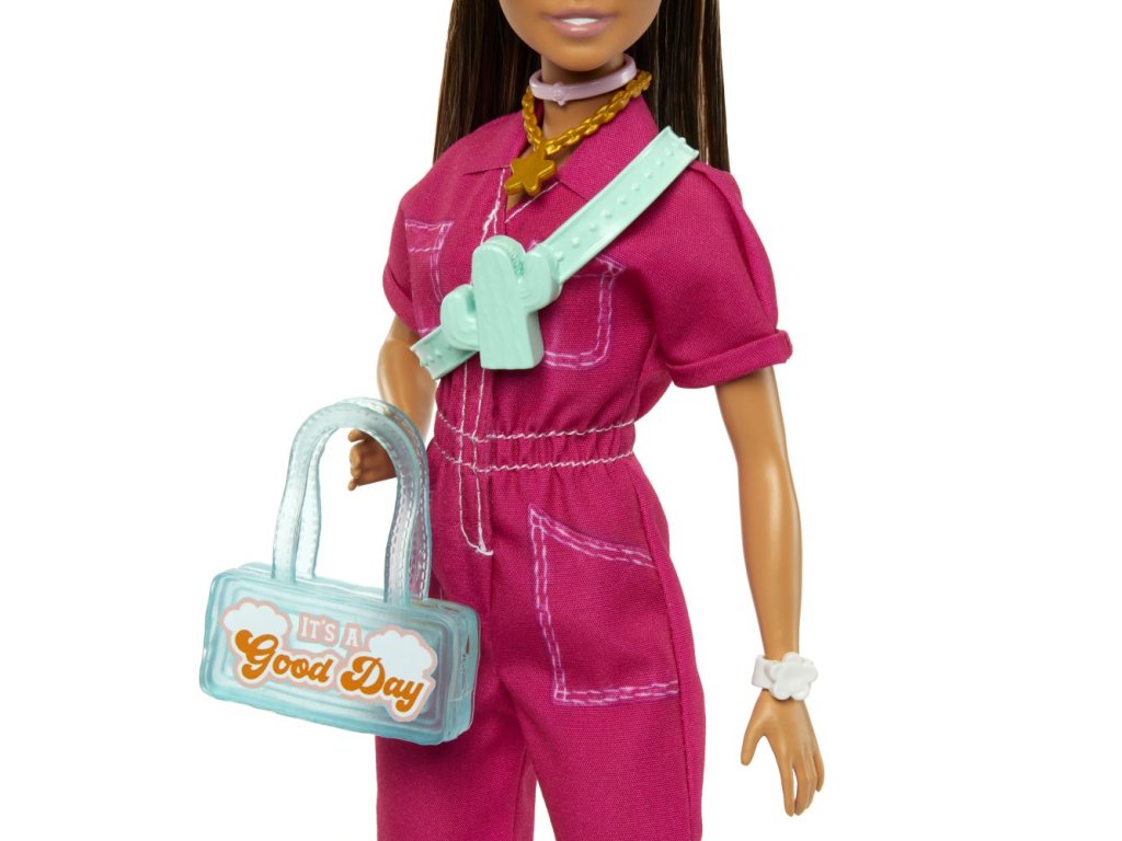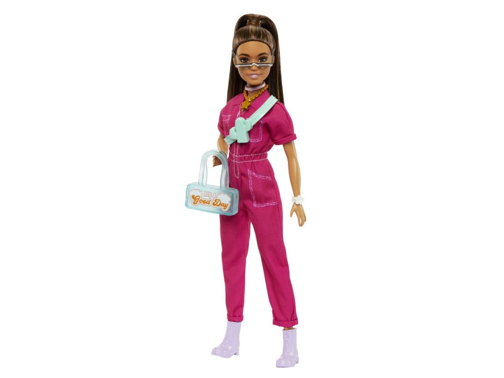 Se svěžím vzhledem a stylovými doplňky je tato Barbie® Deluxe módní panenka - v kalhotovém kostýmu připravena na nejrůznější dobrodružství! Panenka Barbie® má na sobě zářivě růžový overal. Její hladké hnědé vlasy jsou stažené do vysokého culíku! Skvělý módní outfit umocňují barevné doplňky: sluneční brýle, hvězdný náhrdelník, náramek, pásek s detaily kaktusu a kabelka s retro grafikou "Good Day". Barbie® je oblečená pro nespočet aktivit od pozdní snídaně a nakupování s přáteli až po piknik v parku. Panenka neumí samostatně stát. Barvy a vzhled výrobku se mohou lišit.