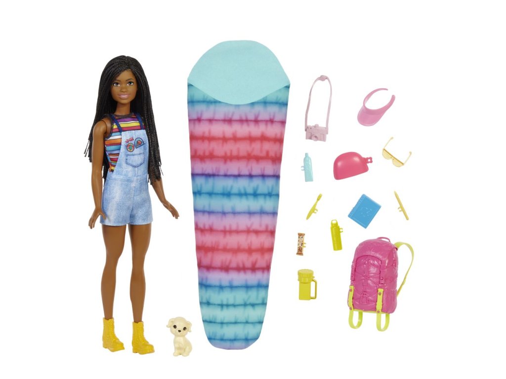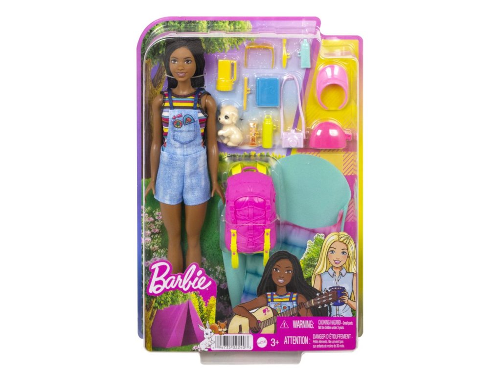 S herním setem Kempující panenka černovláska váš čeká plno zábavy při kempování inspirované zbrusu novou řadou Barbie®! Každý set obsahuje jednu ze dvou oblíbených postav připravených na dobrodružství ve vhodném oblečení a vybavení na kempování. Batoh se otevírá a zavírá, aby se do něj daly uložit potřebné věci, a barevný spací pytel zajistí každé panence pohodlí v noci. Štěňátko inspiruje k rozkošným příběhům o přátelství a 10 dalších dílků umožňuje zábavu při kempování od rána do večera.