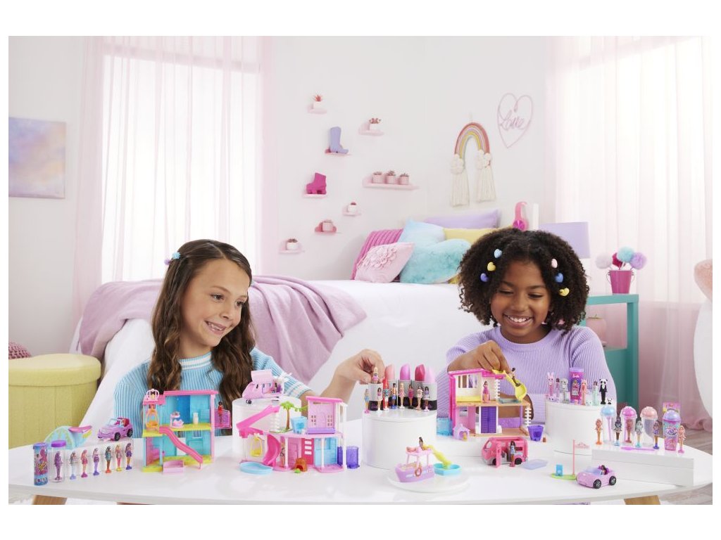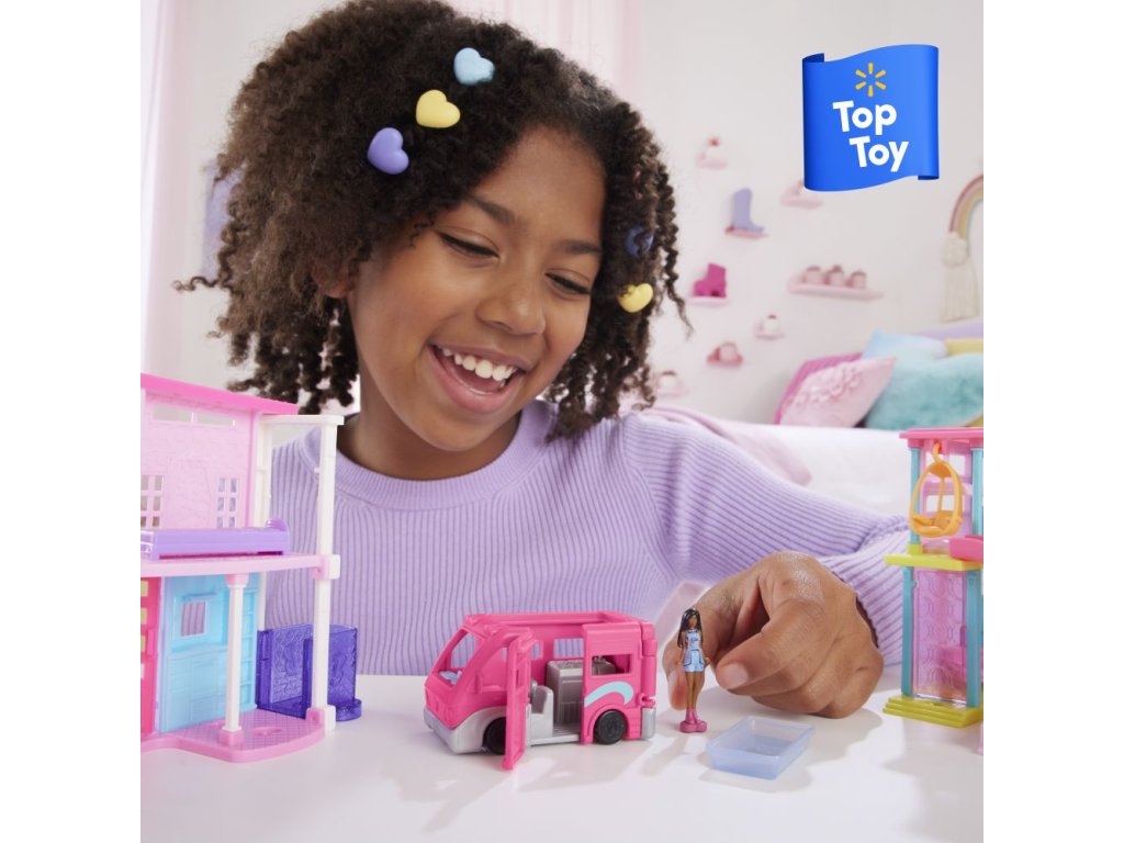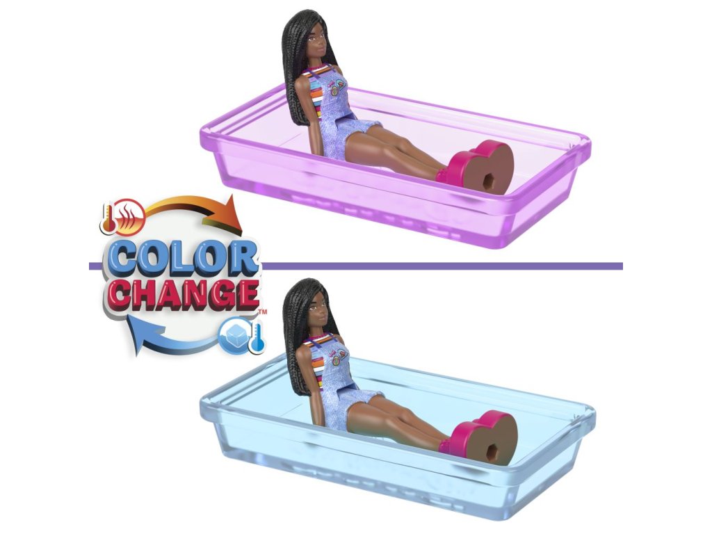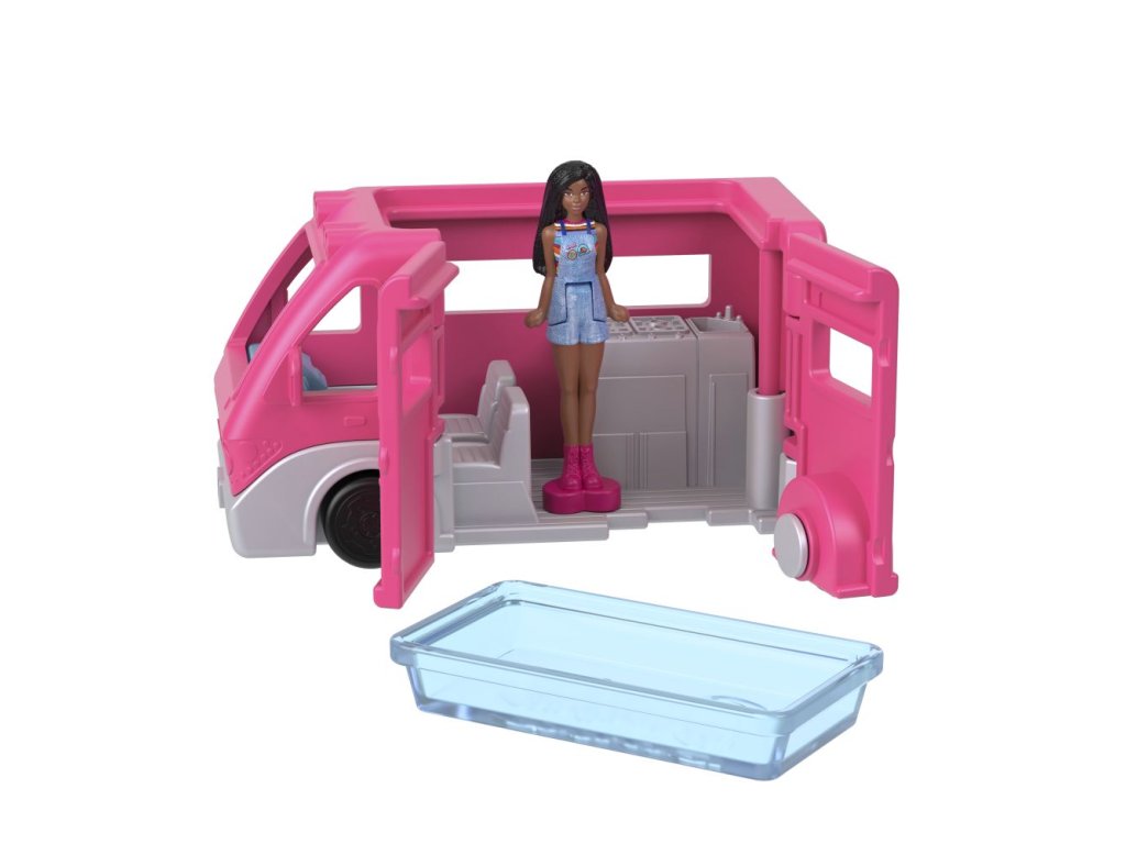 Vydejte se na výlet do Mini BarbieLandu s karavanem snů - zmenšeným na miniaturní velikost a s překvapením v podobě možnosti proměny barev! Součástí balení je také téměř 4 cm velká panenka Barbie® s ohebným pasem, aby mohla sedět a "řídit" vozidlo.