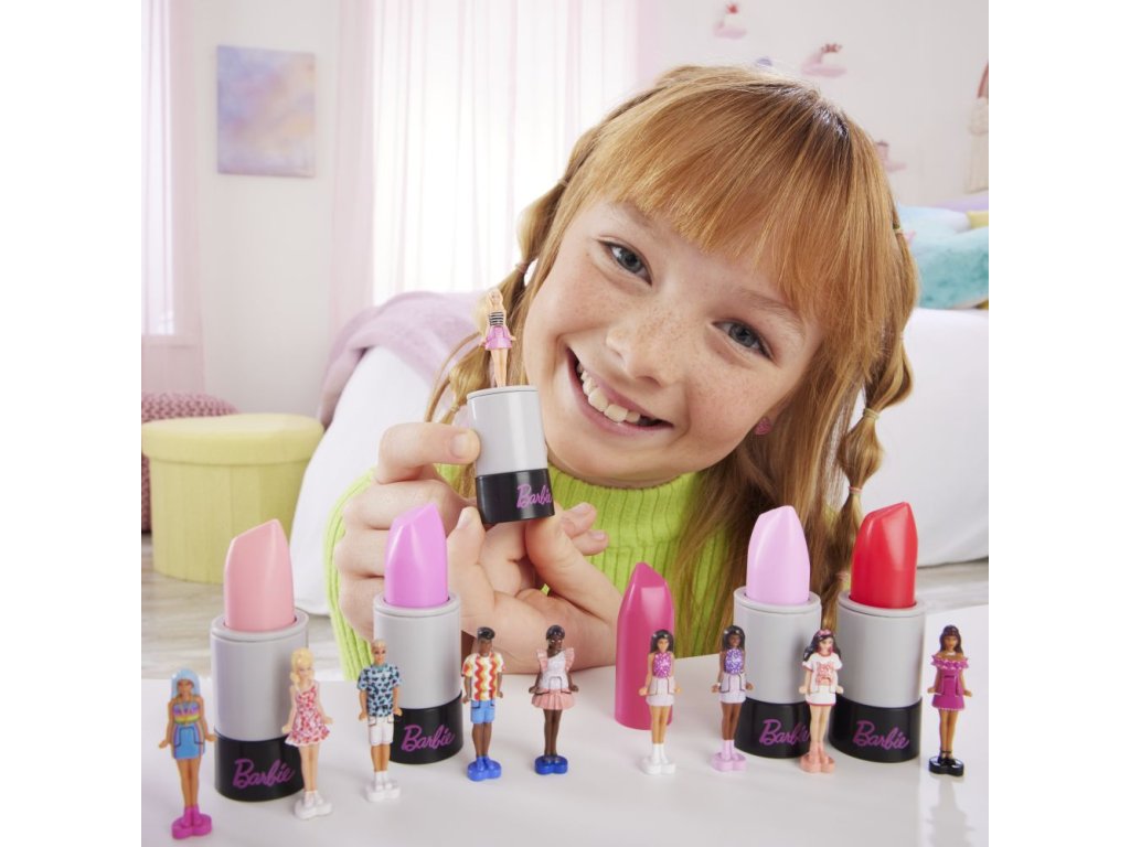 Vstupte do světa panenky Barbie® s Mini BarbieLandem - místem, kde si můžete i s malou hračkou představovat velké věci! Tyto mini panenky modelky jsou navrženy tak, aby překvapily, a po odhalení jsou připraveny ke hře nebo vystavení. Chcete-li zjistit, která panenka se nachází uvnitř rtěnkové tuby, otočte jí a sledujte, jak se téměř 4 cm velká panenka Barbie® nebo Ken™ vynoří a pořádnou porcí zábavy! Všechny panenky se ohýbají v pase a stojí na podstavci ve tvaru srdce, který se hodí do herních setů Mini BarbieLand (prodávají se samostatně).