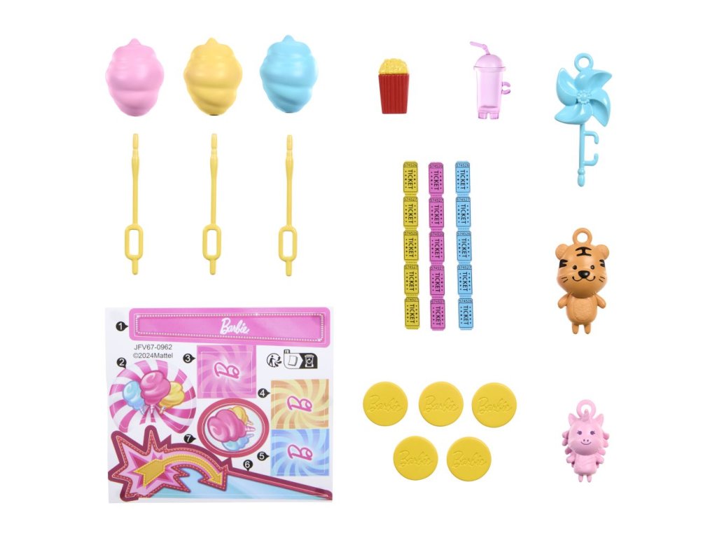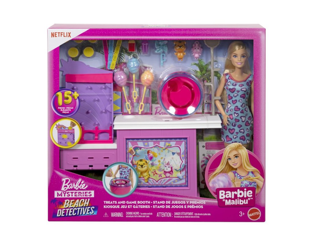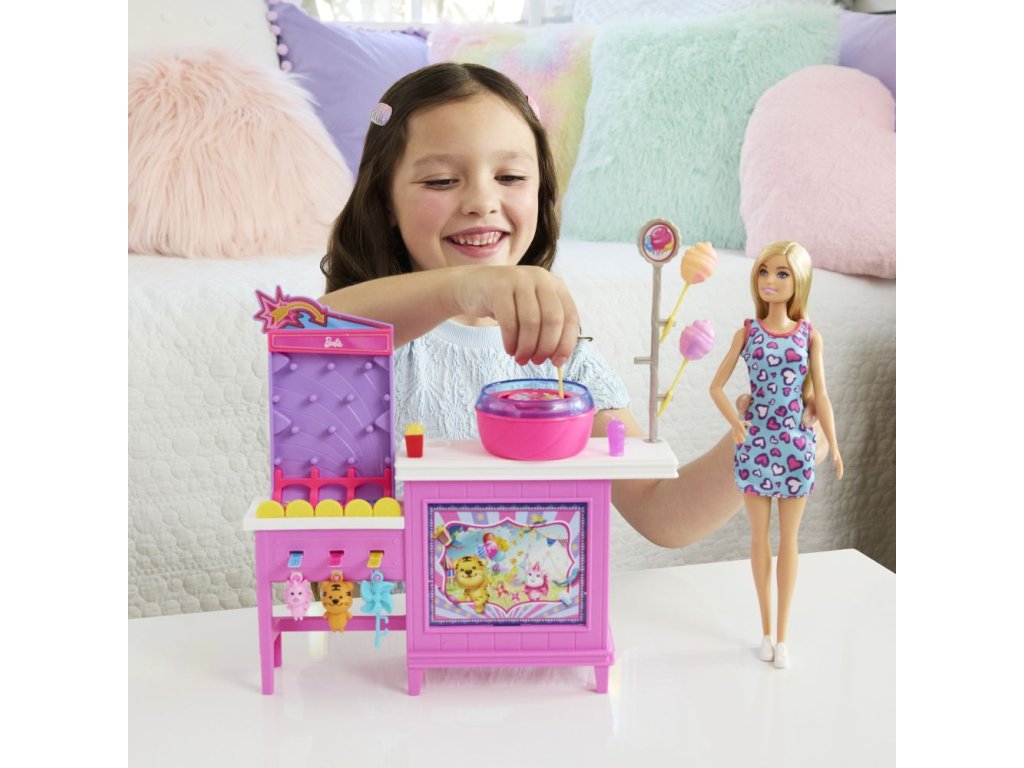 S panenkou Barbie si můžete vymýšlet nejrůznější příběhy na pláži. Součástí tohoto setu je 20 doplňků pro panenku a stánek s cukrovou vatou! Tento herní set inspirovaný oblíbeným seriálem přenese fanoušky na plážovou promenádu. Děti mohou vhodit žeton do herního automatu a pomoci panence Malibu vybrat cenu - je tu prasátko, tygřík a kolíček - a poté roztočit zábavu s automatem na cukrovou vatu! Panenka Barbie „Malibu“ je oblečena do ležérních šatů se srdíčkovým potiskem a bílých tenisek. Děti a fanoušci od 3 let si zamilují přehrávání scén a vymýšlení vlastních plážových dobrodružství! Panenka nemůže stát samostatně. Barvy a vzhled výrobku se mohou lišit.