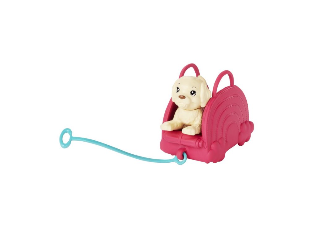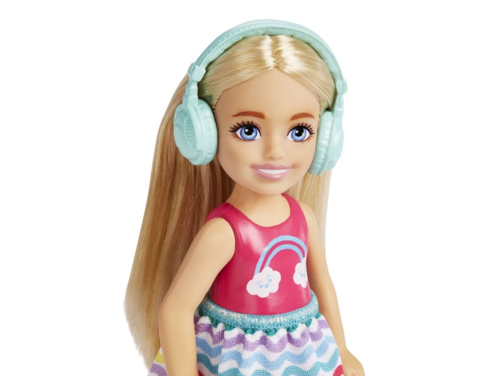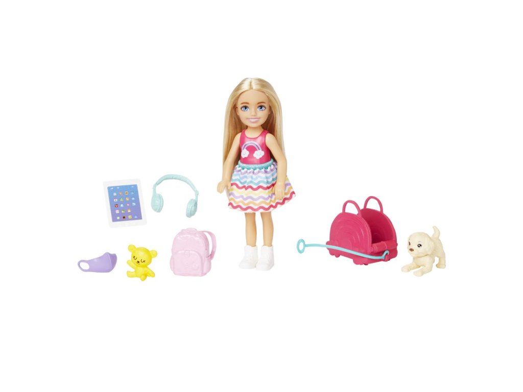 Panenka Chelsea™ na cestách a její štěňátko jsou inspirováni seriálem Barbie - Na to jsou potřeba dva a jsou připraveni na výlet s kufrem na kolečkách, batohem, mobilním telefonem se sluchátky a dalšími doplňky. Panenka neumí samostatně stát.