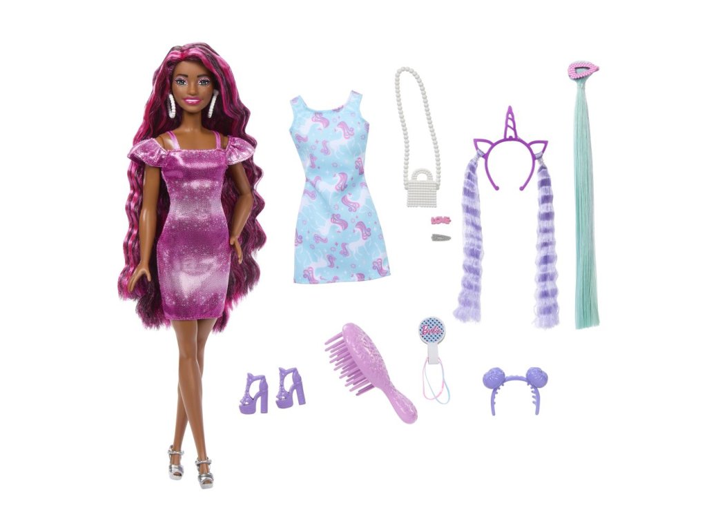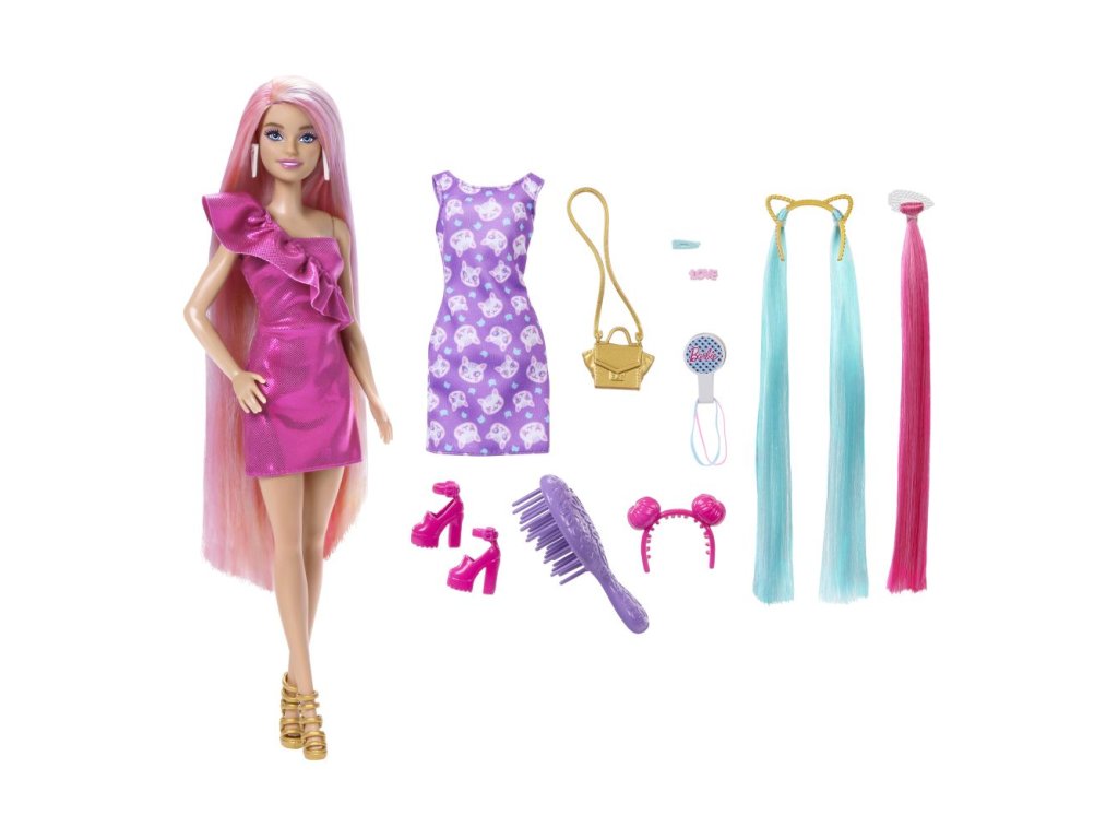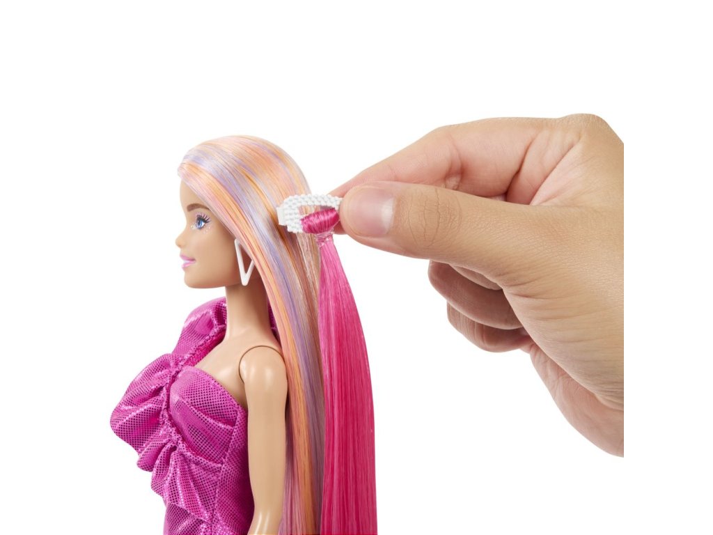 Kolekce Barbie® Panenka s fantastickými vlasy přináší úžasnou zábavu pro malé kadeřnice, které mohou vytvářet barevné kombinace účesů! Každá panenka má 21 cm dlouhé barevné vlasy s duhovými odlesky. Děti si mohou vzhled své panenky přizpůsobit pomocí 11 módních a vlasových doplňků, včetně dalších šatů s potiskem, dalšího páru bot a kabelky! Panenka neumí samostatně stát.