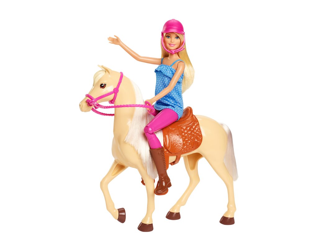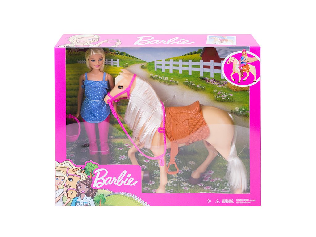 Panenka Barbie® a její koník jsou připraveni na dlouhý výlet do přírody. Připoj se k panence Barbie® a užijte si krásný slunečný den, protože ten nejkrásnější pohled je z koňského hřbetu. Barbie® se na vyjížďku oblékla do pohodlného oblečku skládajícího se z módního topu, růžových kalhot a vysokých jezdeckých bot. Před vyjížďkou nezapomeň panence nasadit jezdeckou přilbu. Bezpečnost je důležitá!