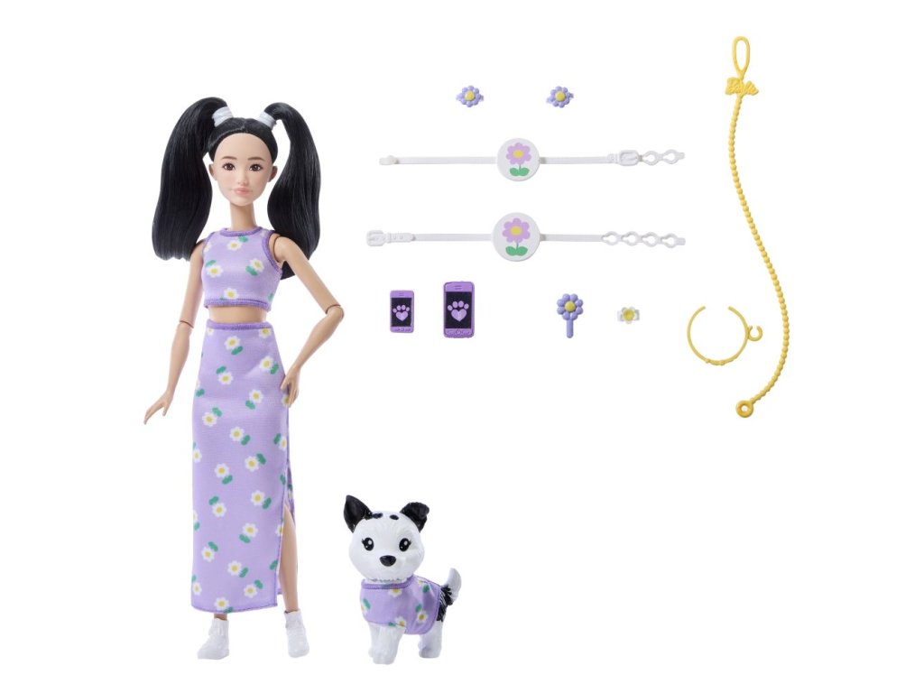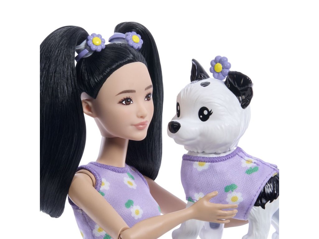 Zdvojnásobte zábavu s panenkami Barbie. Panenky Barbie jsou dodávány s roztomilým psím mazlíčkem v odpovídajícím oblečku. Díky sadě sladěných doplňků pro Barbie i jejího pejska si děti mohou dvojici vystajlovat od hlavy až k patě! Mašle, náhrdelníky a další doplňky dodají panence osobitost. Rozkošné dvojice jsou oblečeny na všechny možné příležitosti. Každý set se prodává samostatně podle dostupnosti. Panenka nemůže stát samostatně. Barvy a vzhled výrobku se mohou lišit.